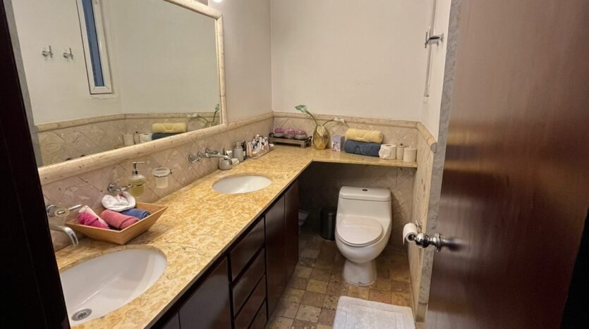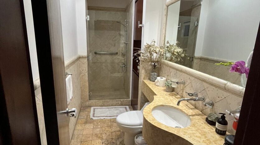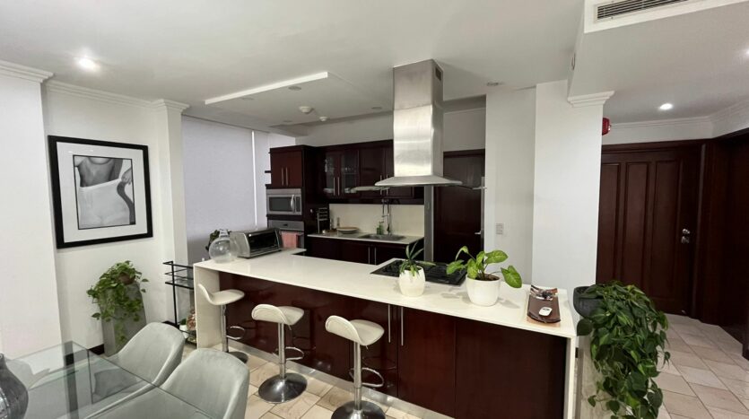 El apartamento cuenta con preciosa y amplia sala comedor, cocina empotrada y abierta, integrada y moderna, con isla de Quarzo blanco y linea blanca, habitación de servicio con su propio baño, área de lavandería, sala de tv, 3 Habitaciones, las secundarias comparten baño completo y la principal tiene su propio baño y wak-in-closet, además medio baño para visitas. Además por su ubicación cuenta con 2 amplios balcones para que pueda apreciar las preciosas vistas de la ciudad. Además tenemos 2 espacios de parqueo y bodega.