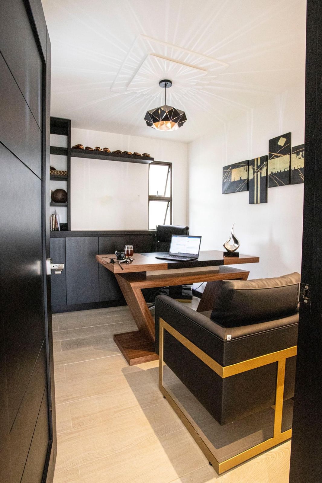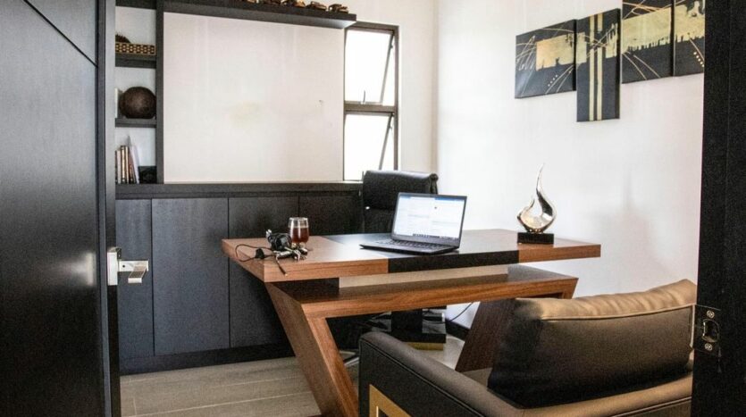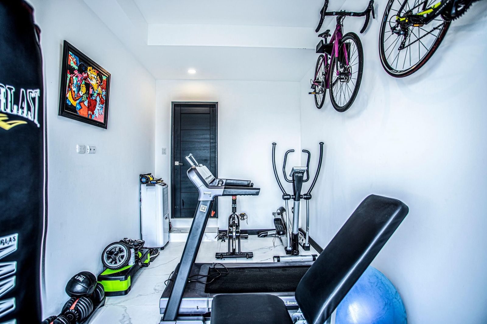 Oficina y gimnasio en planta baja, con posibilidad de adaptar como cuarta habitación o habitación de servicio.