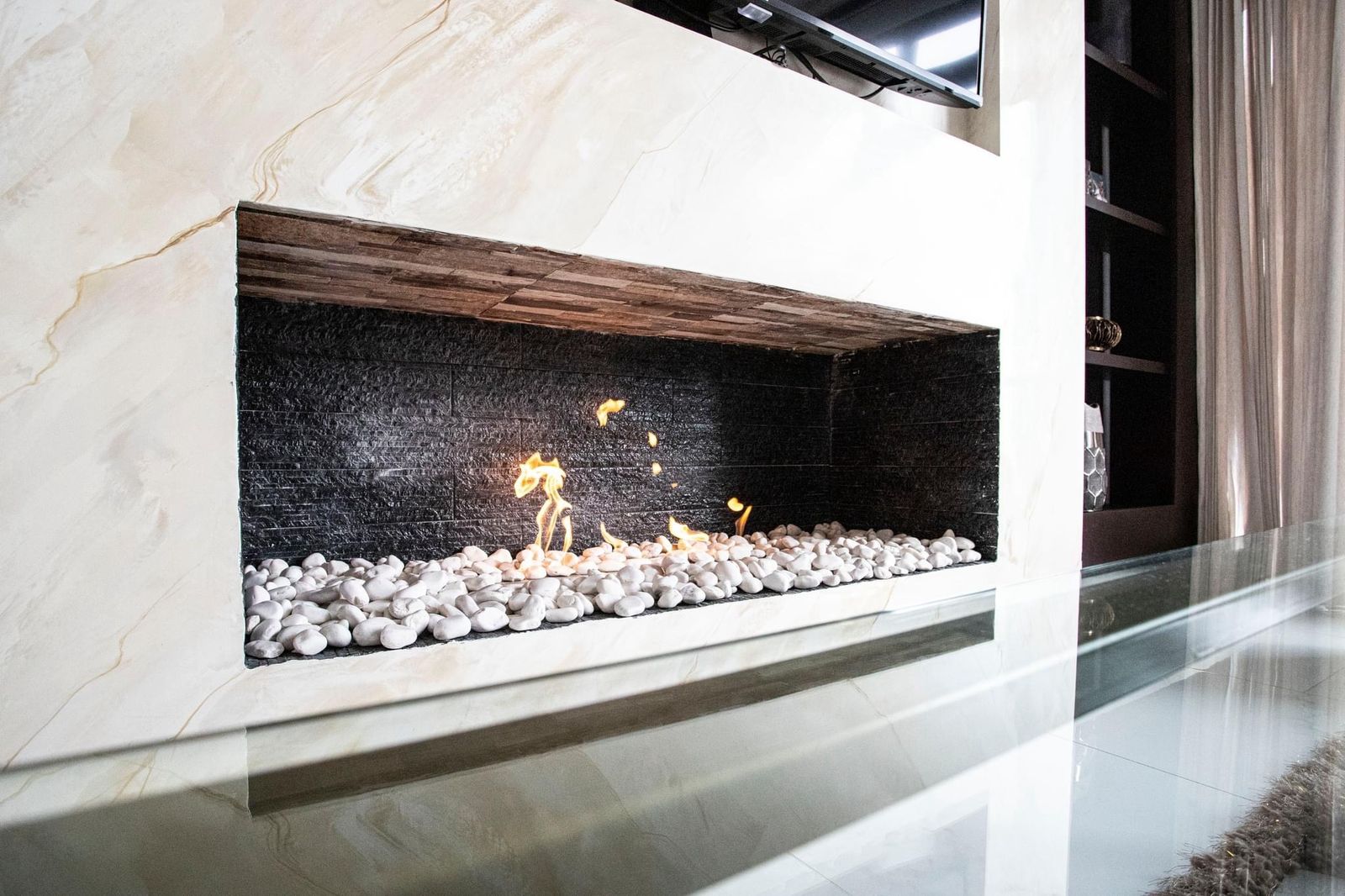 Sobres de cuarzo, pisos de porcelanato español e italiano y madera.