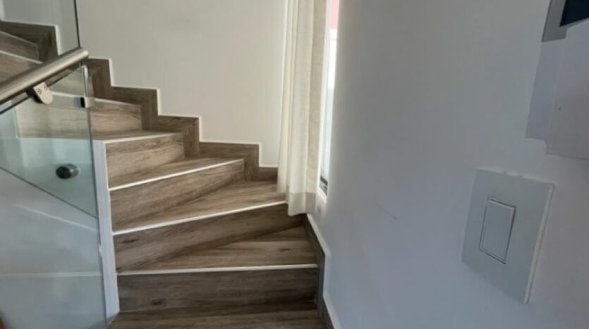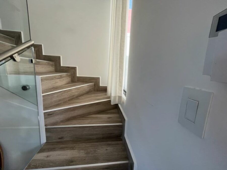 La casa fue construida en 2 plantas, en la primera planta tenemos una cómoda cocina integrada con Sala y Comedor y una terraza y medio baño, además al subir las gradas encontramos una cómoda sala de TV, 2 habitaciones con baño y su closet.