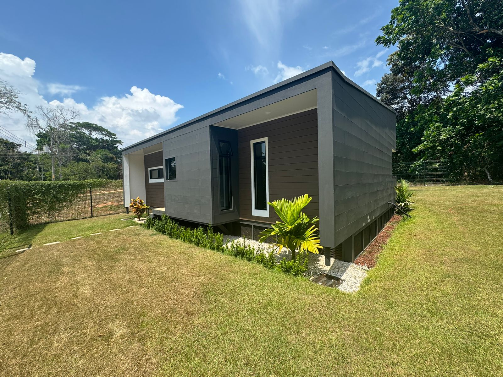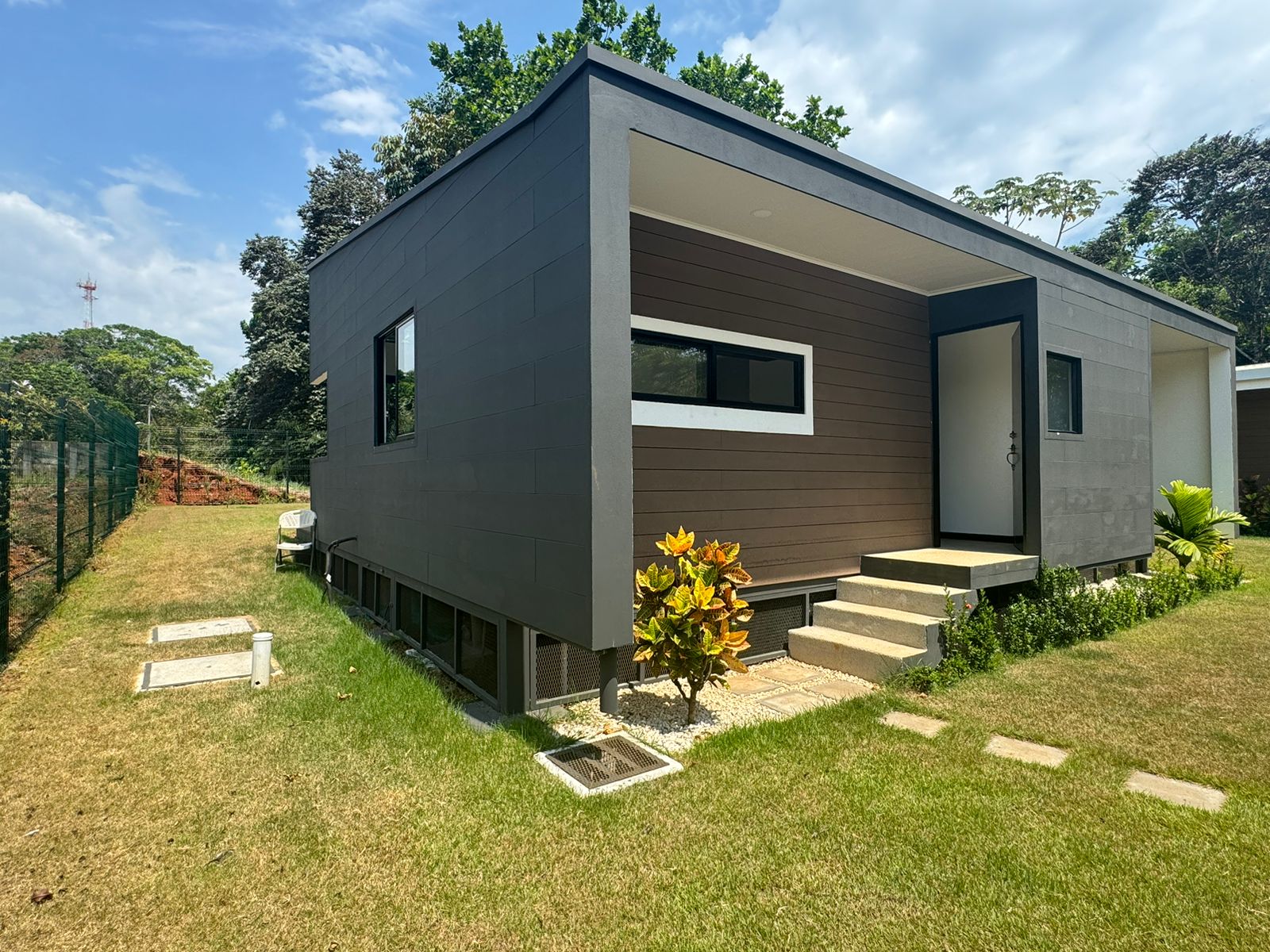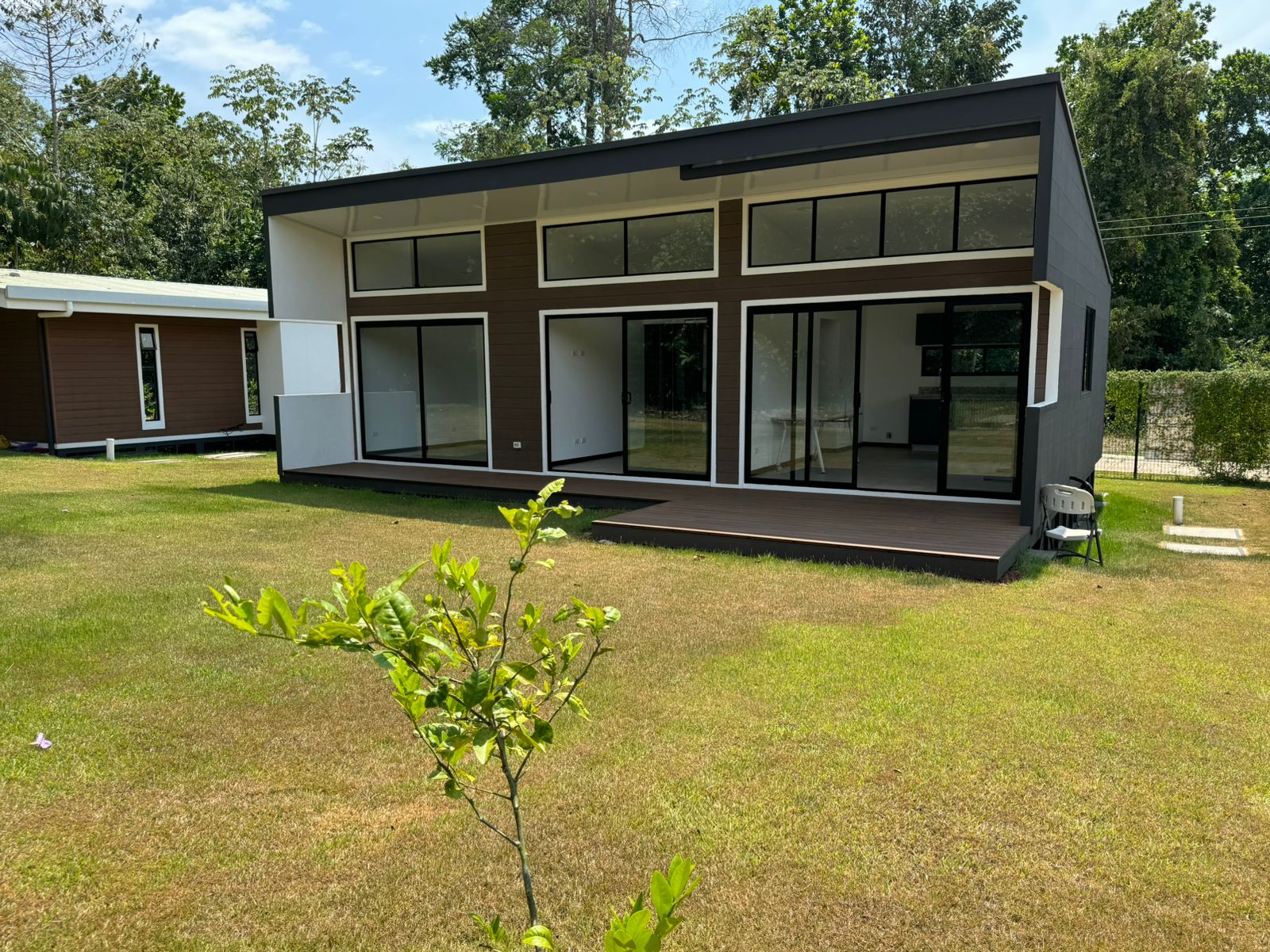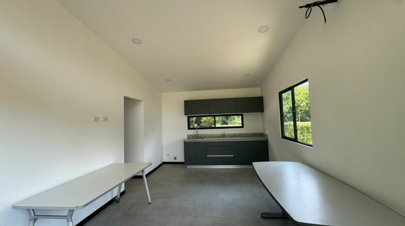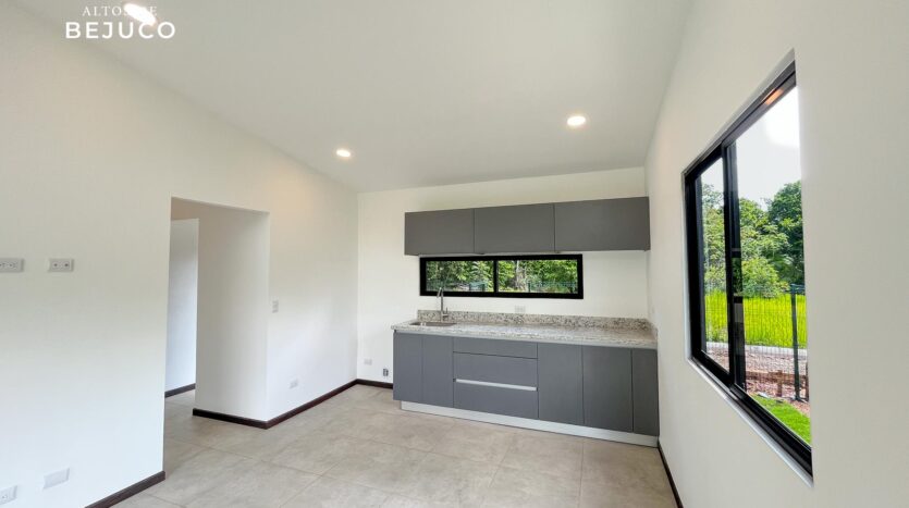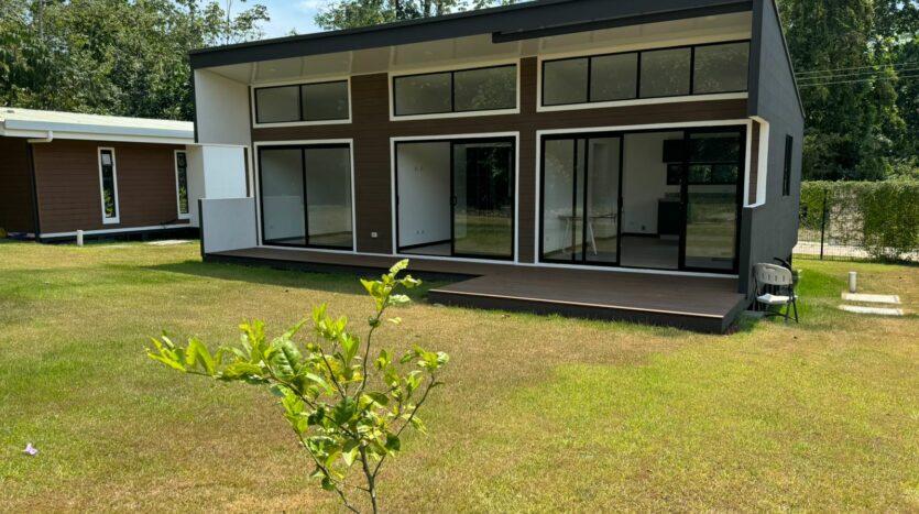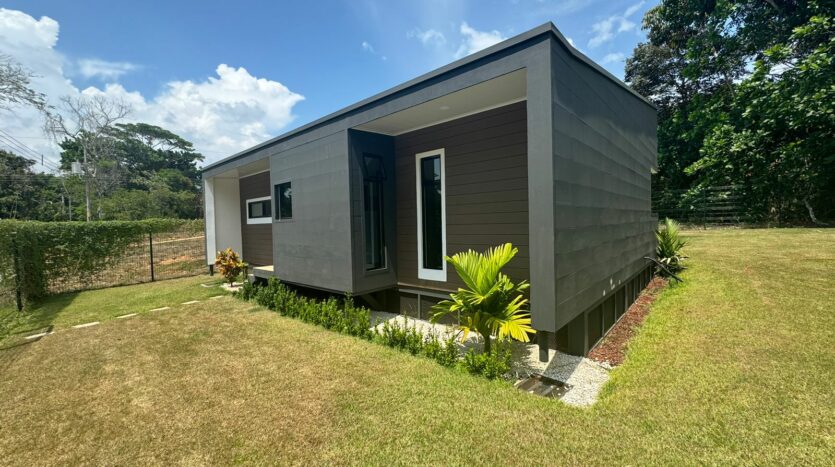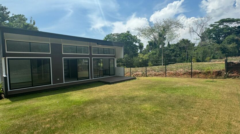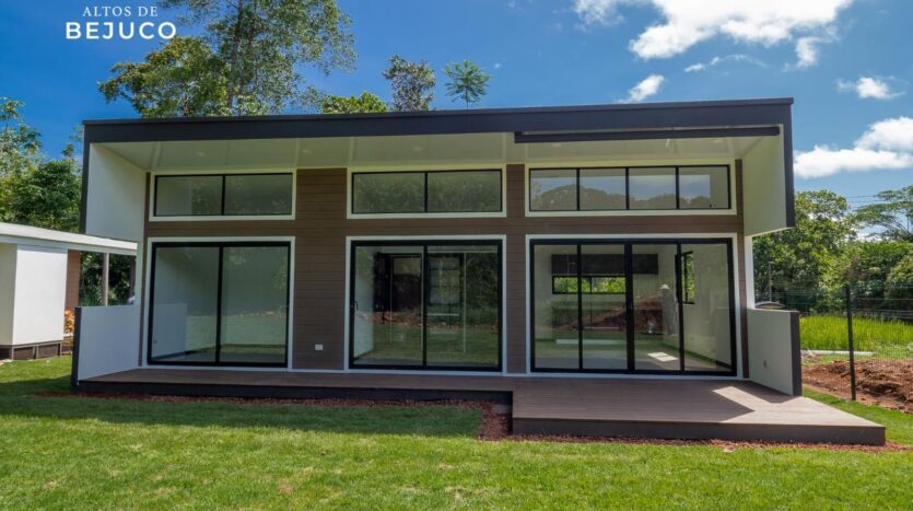 Esta bellísima casa de una sola planta, con estilo tropical, rodeada de naturaleza, precioso balcón frente a las habitaciones y terraza frente en la entrada de la vivienda, lo hará desear mudarse al Pacífico costarricense.