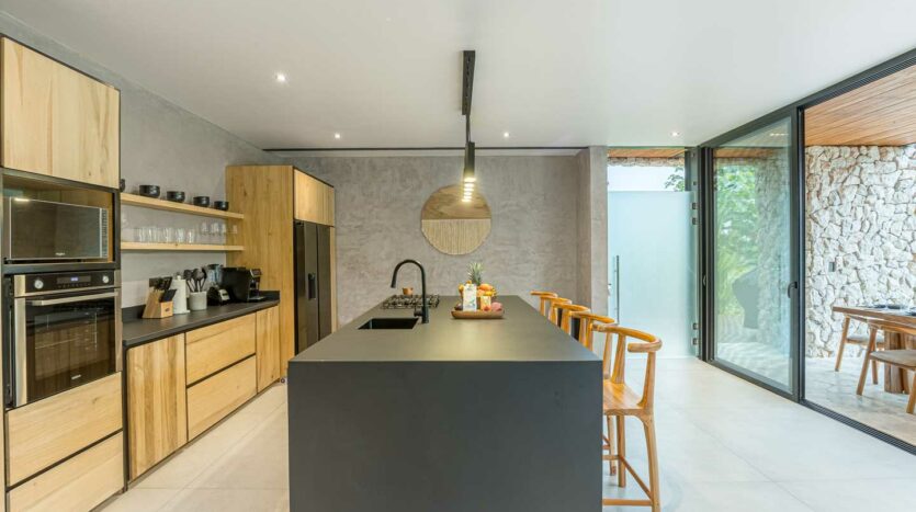 - Materiales naturales como concreto pulido y piedra, con integración perfecta entre espacios interiores y exteriores.