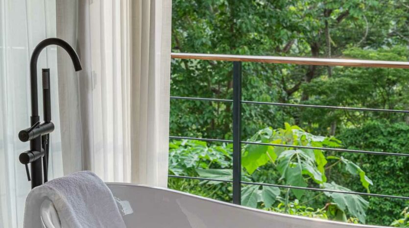 - Two upper-level master bedrooms with designer bathtubs opening to breathtaking jungle views.