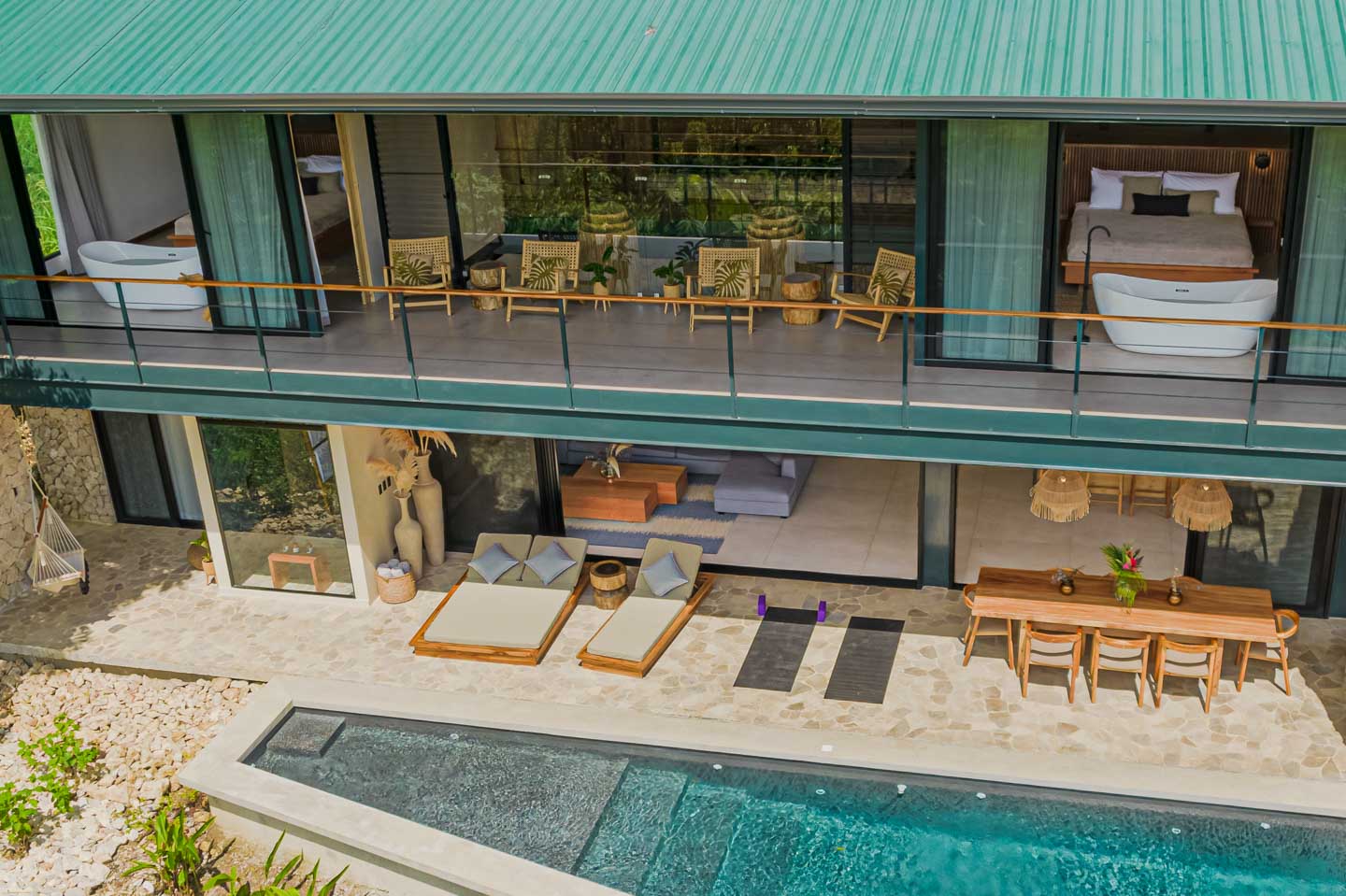 - Dos habitaciones principales en el nivel superior con bañeras de diseño abiertas a vistas impresionantes de la selva.