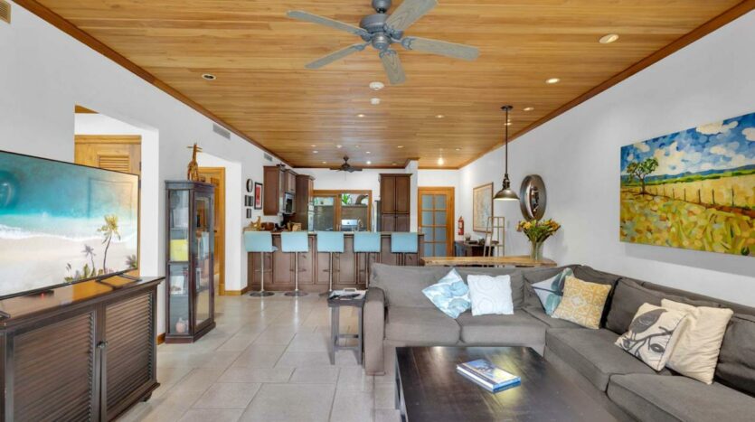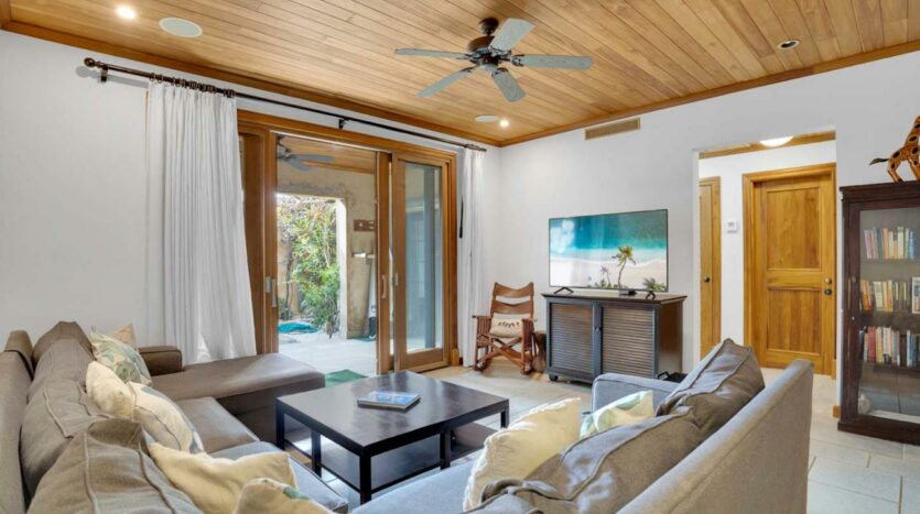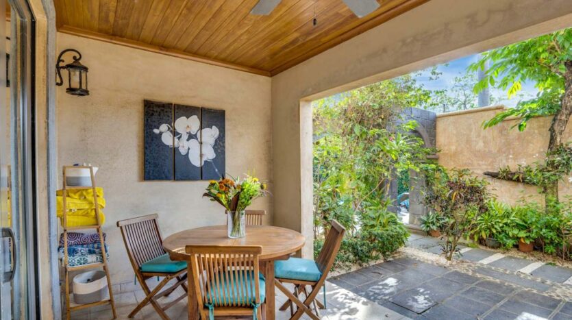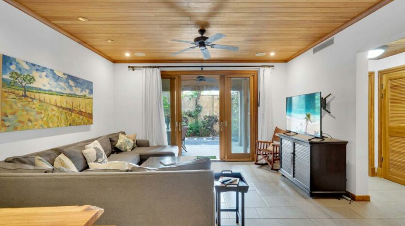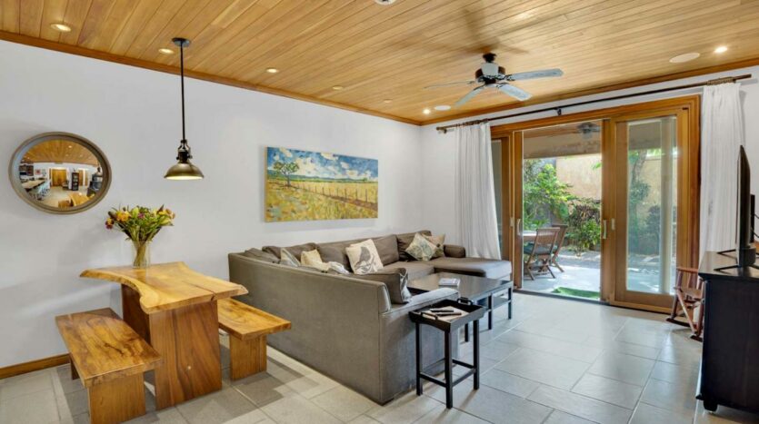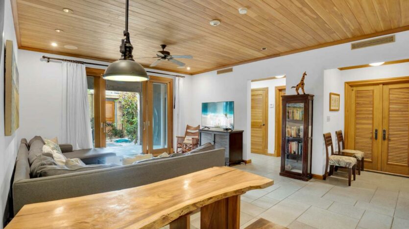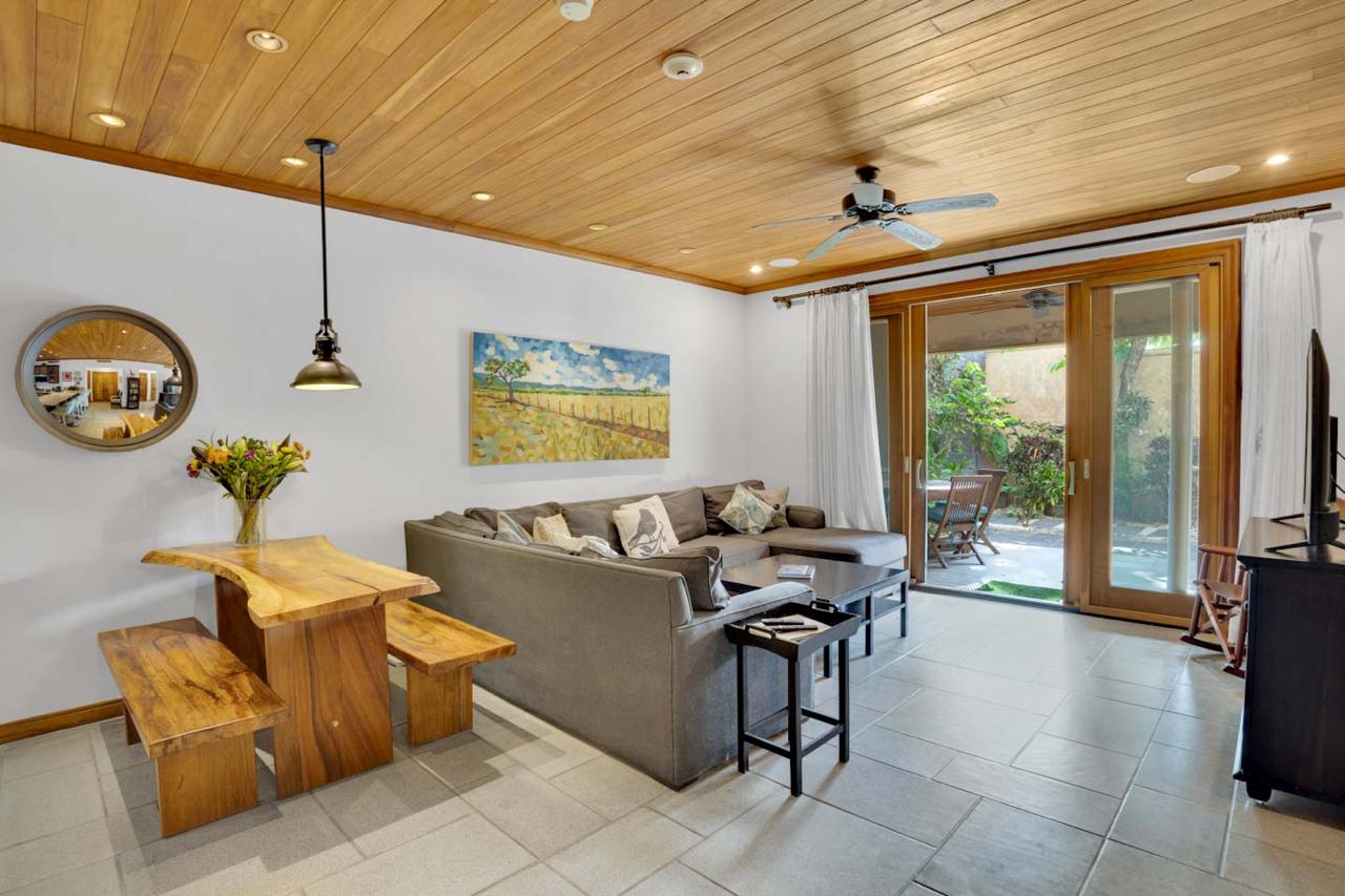 Este amplio hogar en planta baja cuenta con dos habitaciones y dos baños, exquisitamente amueblado con un enfoque en calidad y estilo. Desde el primer momento, quedarás encantado con los detalles de madera de teca en techos y acabados, iluminados naturalmente por puertas corredizas de vidrio que conectan los patios delantero y trasero.