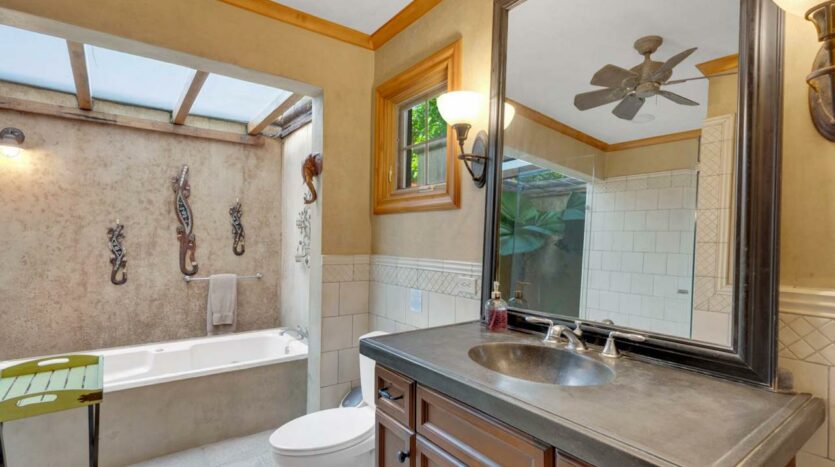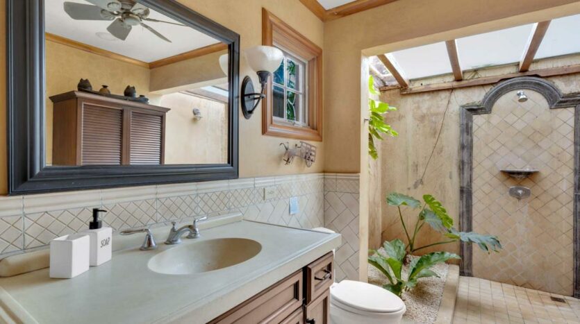Ambos baños son amplios, con un diseño que fusiona lo interior y lo exterior, brindando un ambiente tropical único. El baño principal incluye una bañera y una ducha amplia.