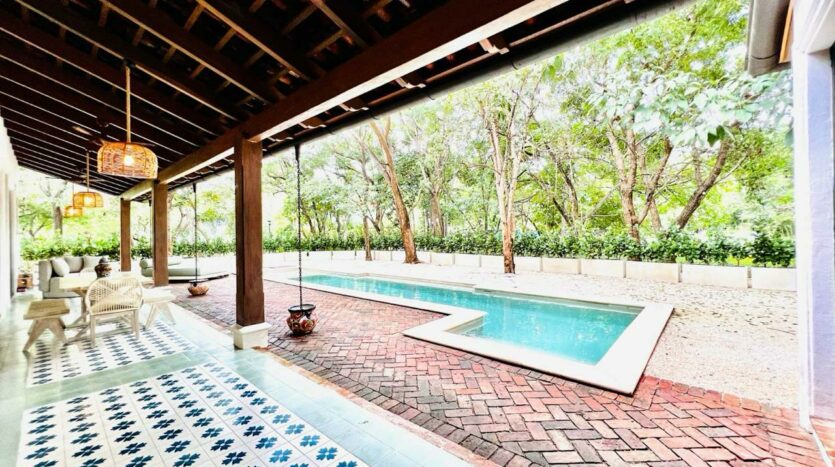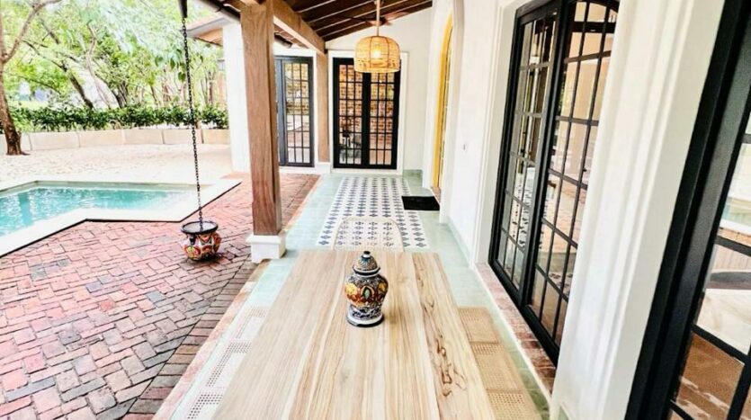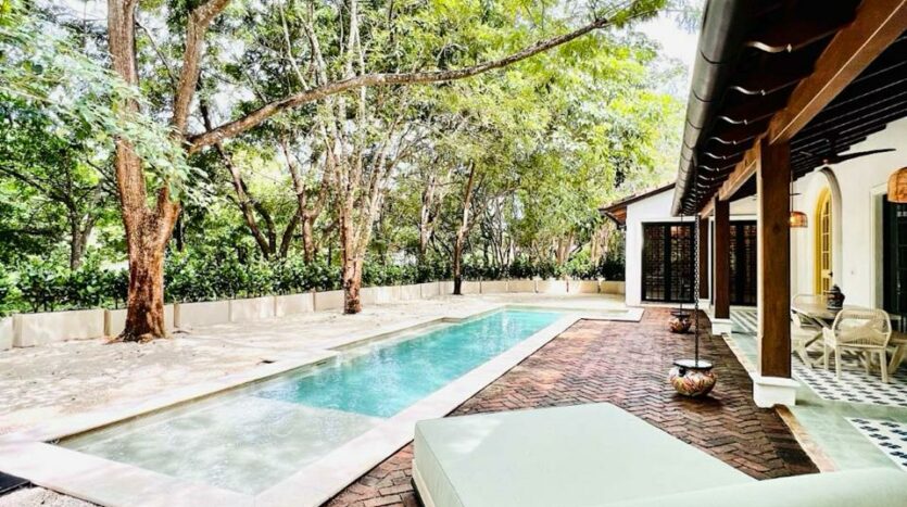 Located in Hacienda Pinilla, this charming residence encompasses an impressive 408 square meters of construction, framed by an extensive 1630 square meter lot. The house exudes exquisite architecture that merges elements of the French countryside with tropical touches, creating a unique and captivating ambiance. Featuring three spacious bedrooms, three elegant bathrooms, and a maid’s room with bathroom, every corner of this property is designed to offer unparalleled comfort. The expansive spaces are flooded with natural light, while the surrounding gardens seem to be straight out of a dream, providing an oasis of tranquility and beauty. A gleaming pool, strategically situated alongside a terrace that opens onto the lush backyard, offers the perfect setting for outdoor relaxation and entertainment. This residence is a true gem nestled in an exclusive community that offers a wide range of amenities, such as golf courses, tennis courts, access to spectacular beaches, a variety of dining options, and, above all, the privacy and serenity found amidst Costa Rica’s natural wonders.