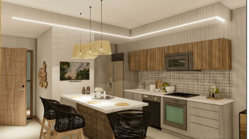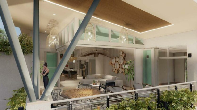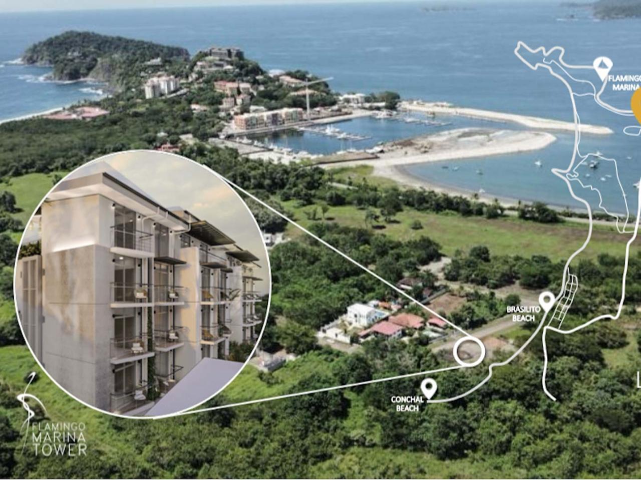 In pre-sale and under construction, this stunning tower in Playa Flamingo is located just a 5-minute walk from the best beaches in Guanacaste, shopping areas, services, and the new marina. Designed with areas for relaxation, it features an elevator and access control. The apartments start at $370,990 and offer an area from 111.8 m², with 2 bedrooms, 2 bathrooms, living room, dining area, kitchen, and 1 parking space.