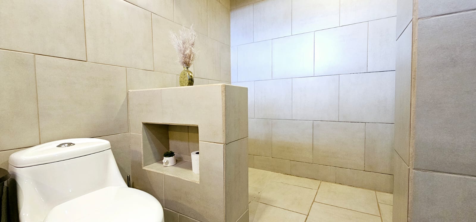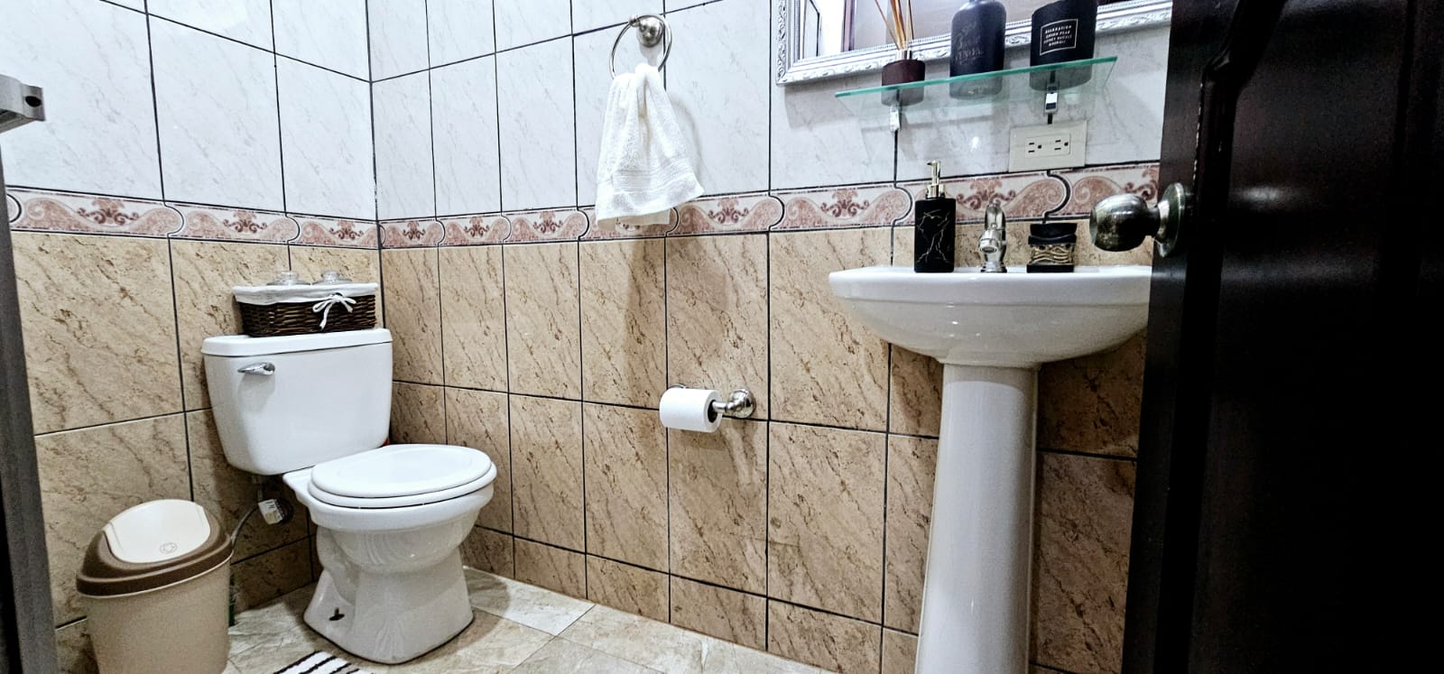3 habitaciones, incluyendo una habitación principal en la primera planta con clóset y baño privado, ideal para mayor comodidad y accesibilidad.