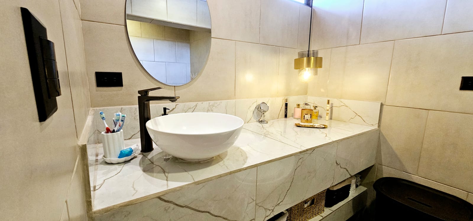 Primer piso remodelado recientemente con pisos en porcelanato.