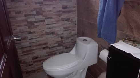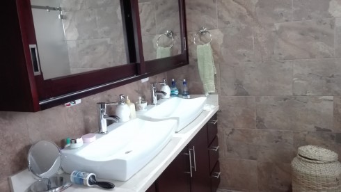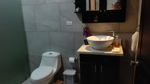 Dos dormitorios con dos baños completos, el cuarto principal de 35 m2 cuenta además con W/C, dos lavatorios servicio sanitario privado de la ducha. Oficina de estudio.