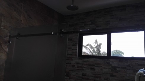 Puertas de baño con vidrio temperado y sandblast con herrajes cromados de lujo.