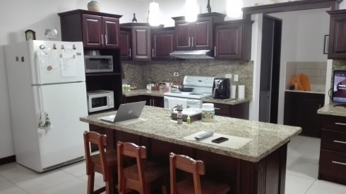 Mueble de cocina y puertas en madera de cedro. Sobres de los muebles de baño en mármol y los sobres y salpicaderas de cocina en granito.