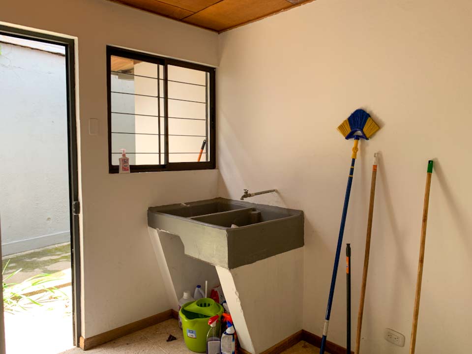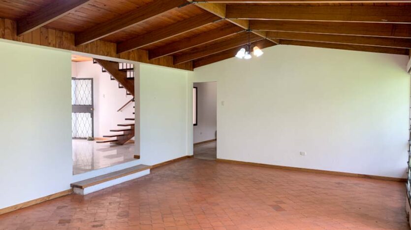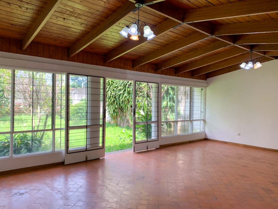 En el primer nivel la sala comedor es muy amplia, cuenta con hermosos cielos artesonados y mucha transparencia además de acceso hacia el patio que es una zona de muchísimo potencia ya que cuenta con más de 190 m2 de espacio libre de jardín trasero y una amplia bodega y un amplio patio de luz junto a la zona de lavandería.
