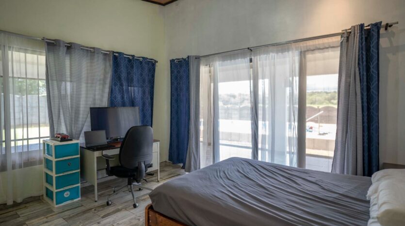 El cuarto principal cuenta con salida a la terraza y piscina , cuenta con su baño privado con un jacuzzi con capacidad para 2 personas.