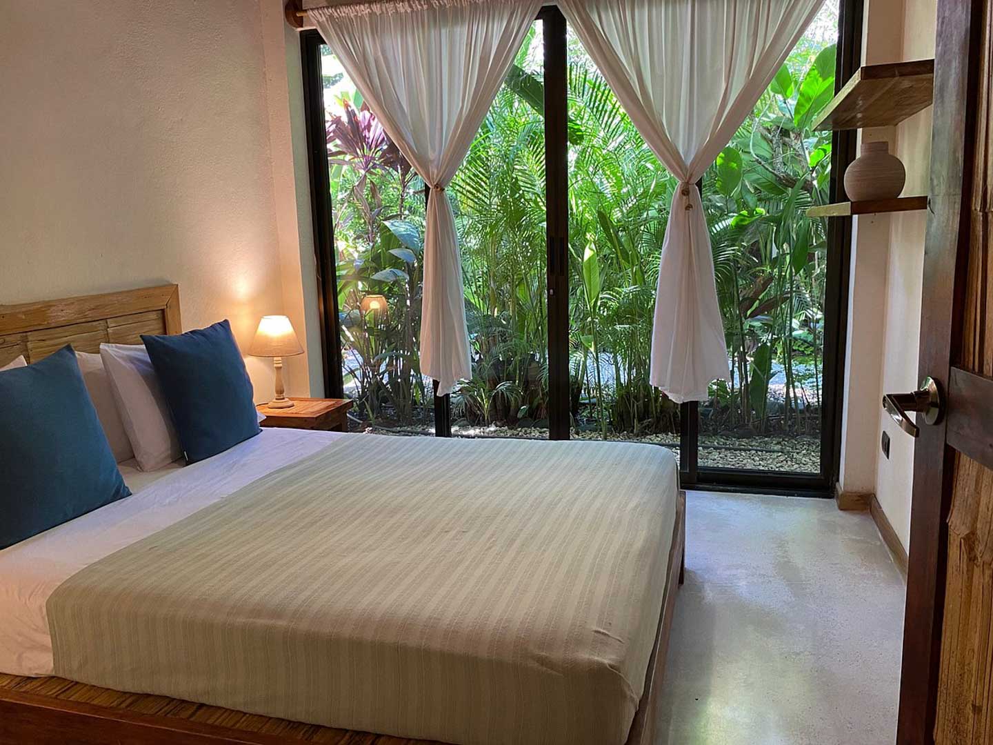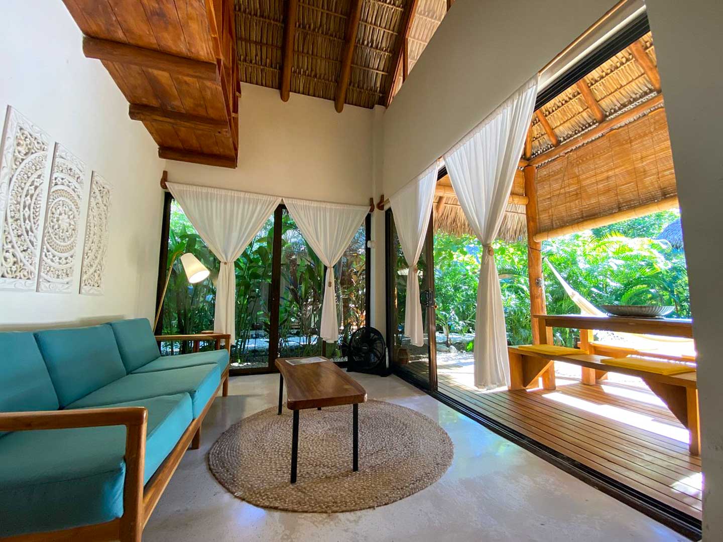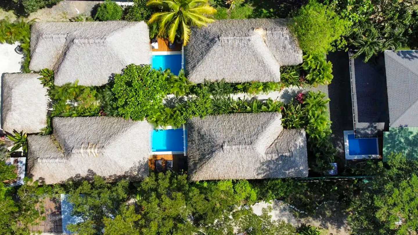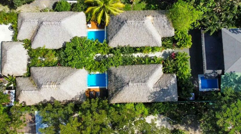- 🏠 4 free-standing villas: Each villa offers an air-conditioned bedroom downstairs, a cozy loft-style bedroom upstairs, a modern bathroom, a fully equipped kitchen, and a private patio overlooking the lush tropical surroundings.