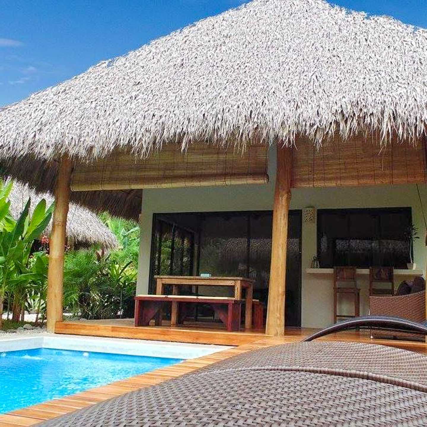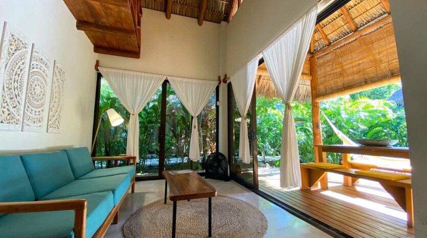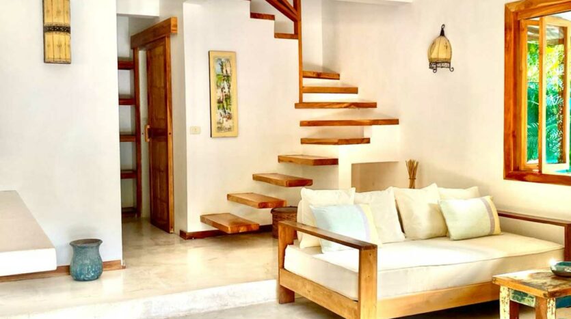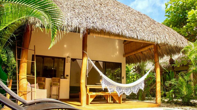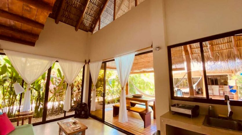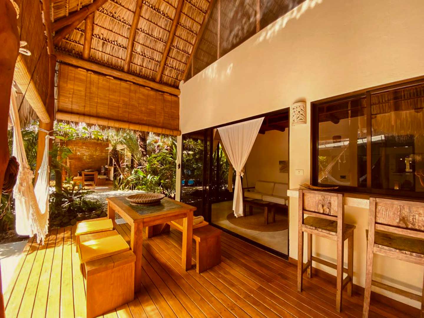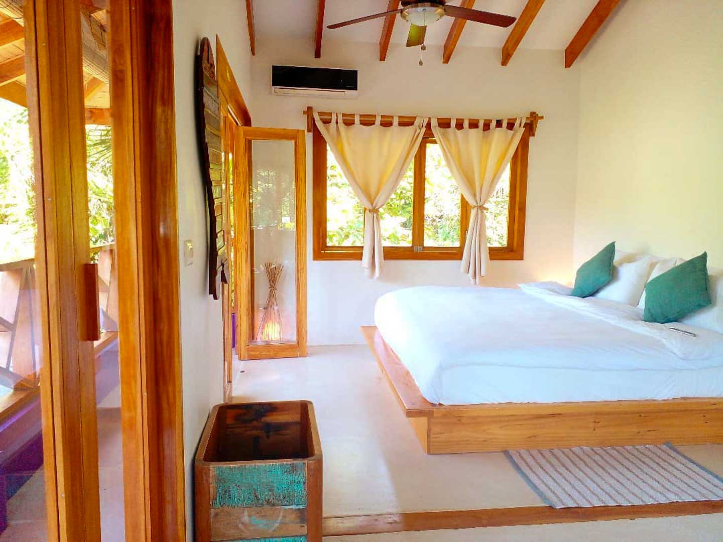 - 🏠 4 free-standing villas: Each villa offers an air-conditioned bedroom downstairs, a cozy loft-style bedroom upstairs, a modern bathroom, a fully equipped kitchen, and a private patio overlooking the lush tropical surroundings.
