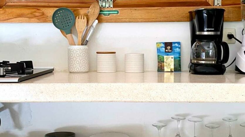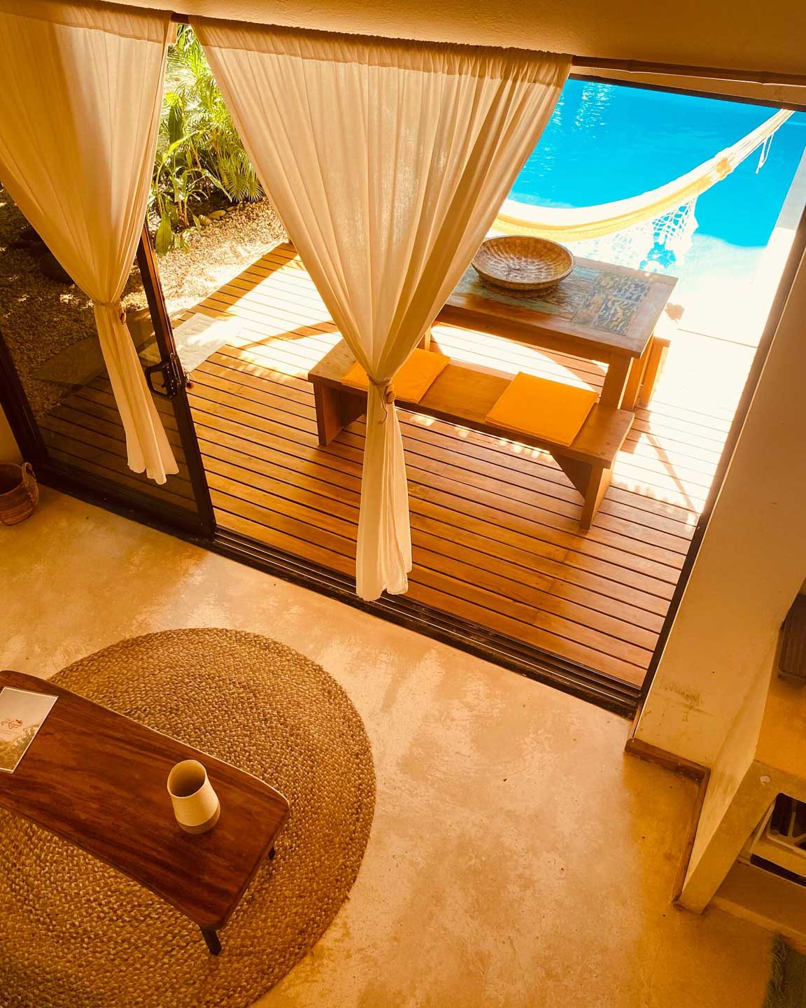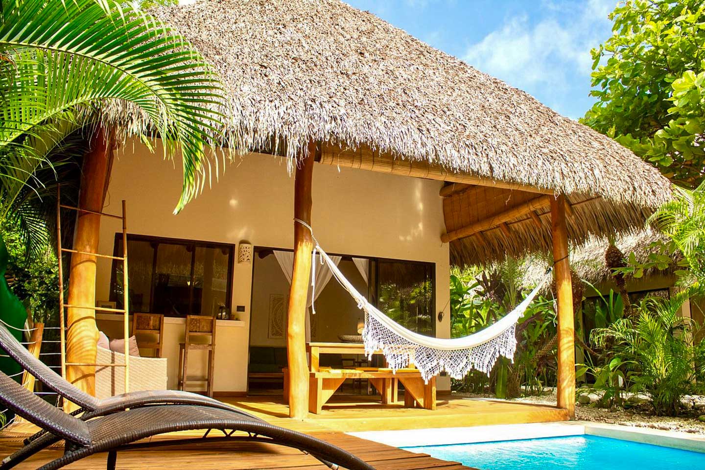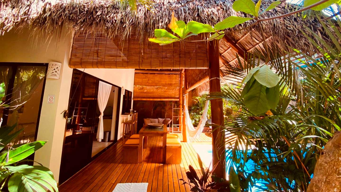 - 🏠 4 free-standing villas: Each villa offers an air-conditioned bedroom downstairs, a cozy loft-style bedroom upstairs, a modern bathroom, a fully equipped kitchen, and a private patio overlooking the lush tropical surroundings.