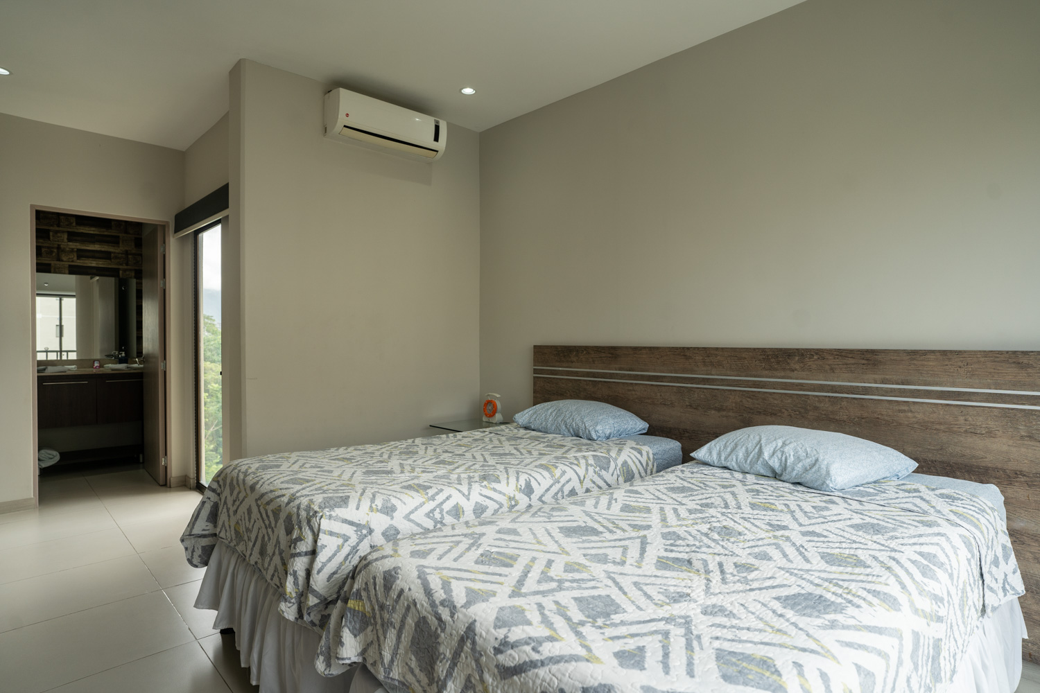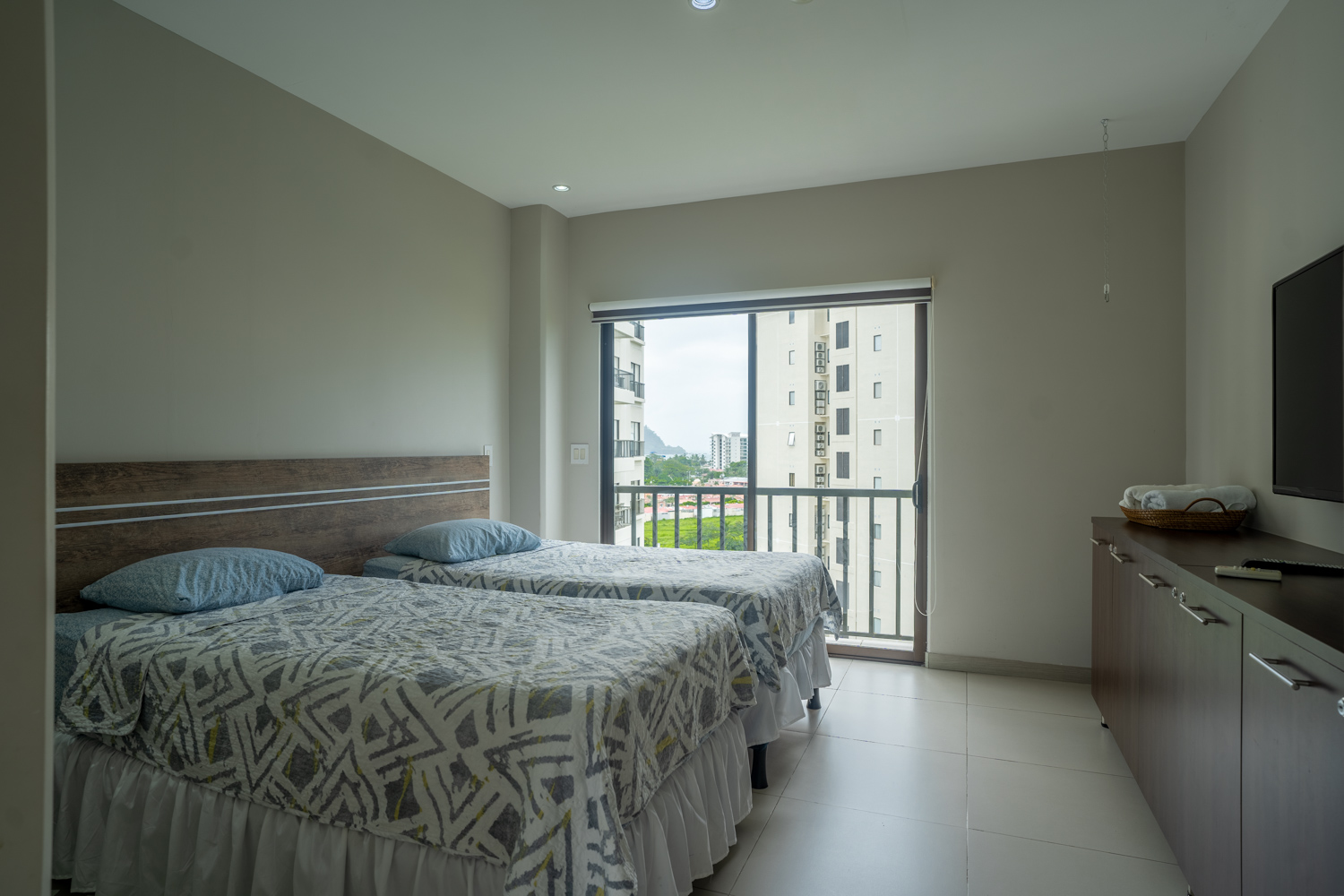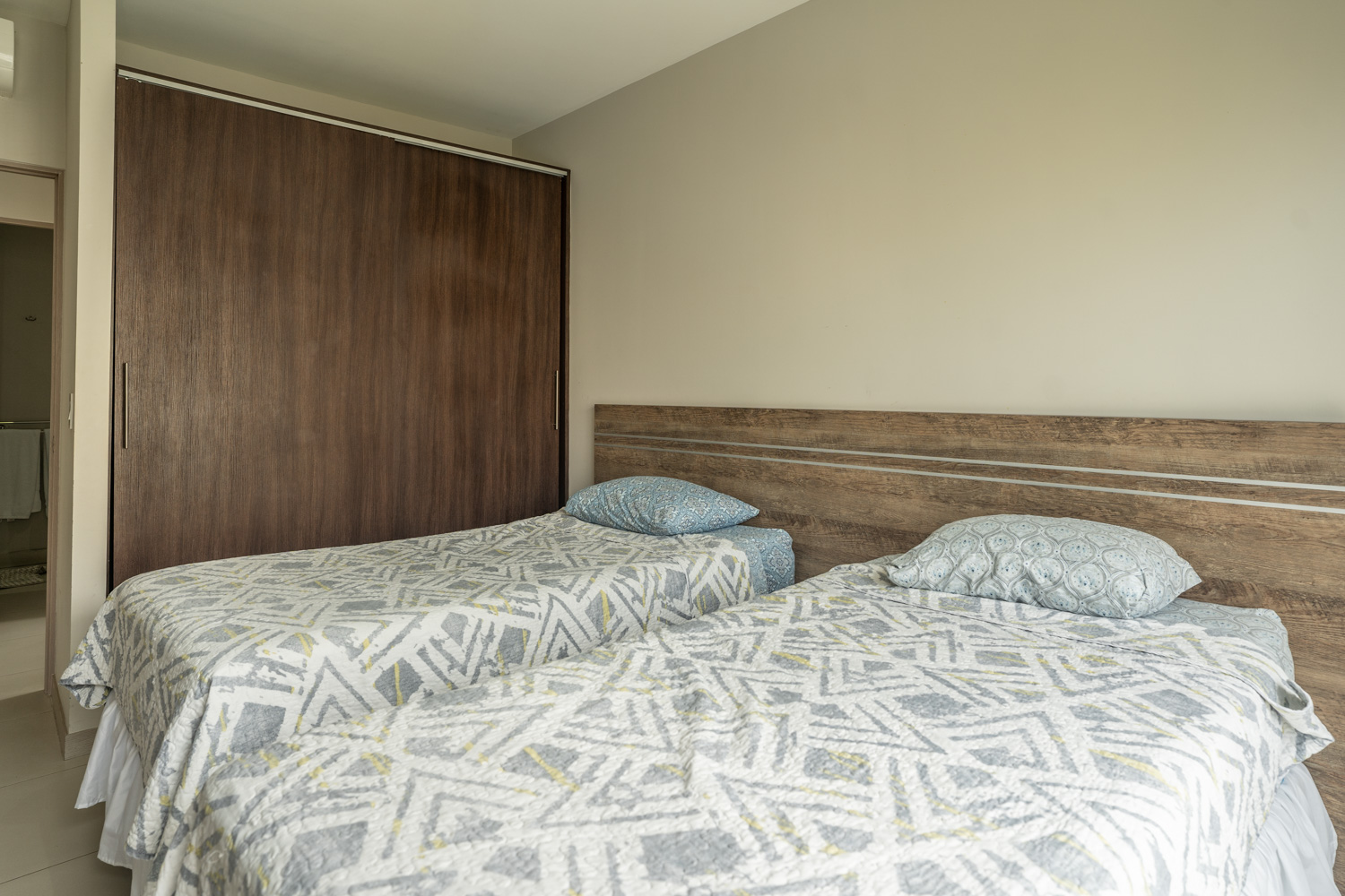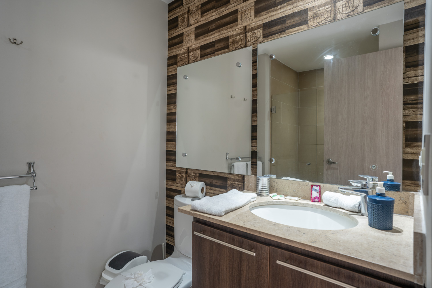 Amplio y con una gran piscina en las áreas comunes, cuenta con dos habitaciones y dos baños, además de una sala, comedor, cocina y balcón muy amplios.