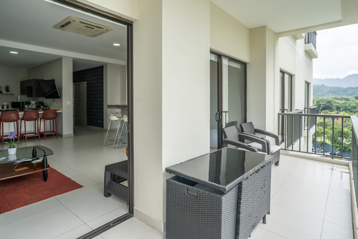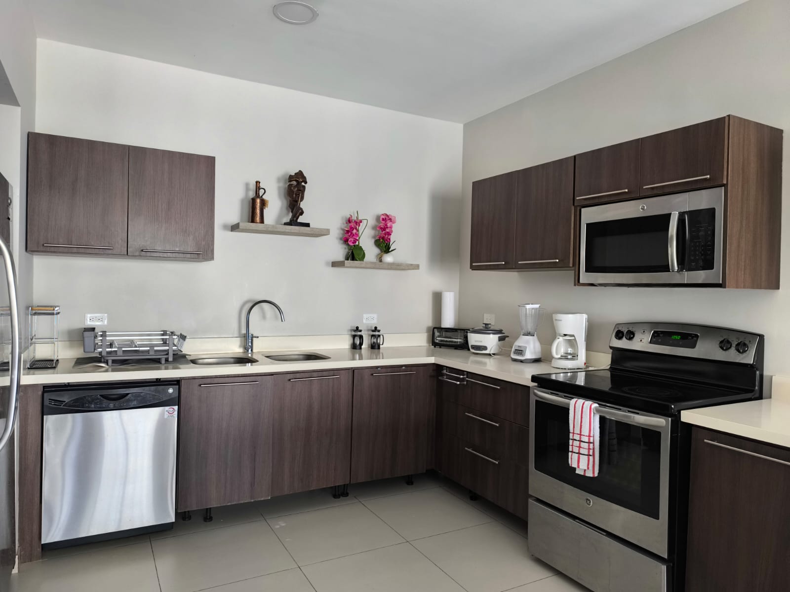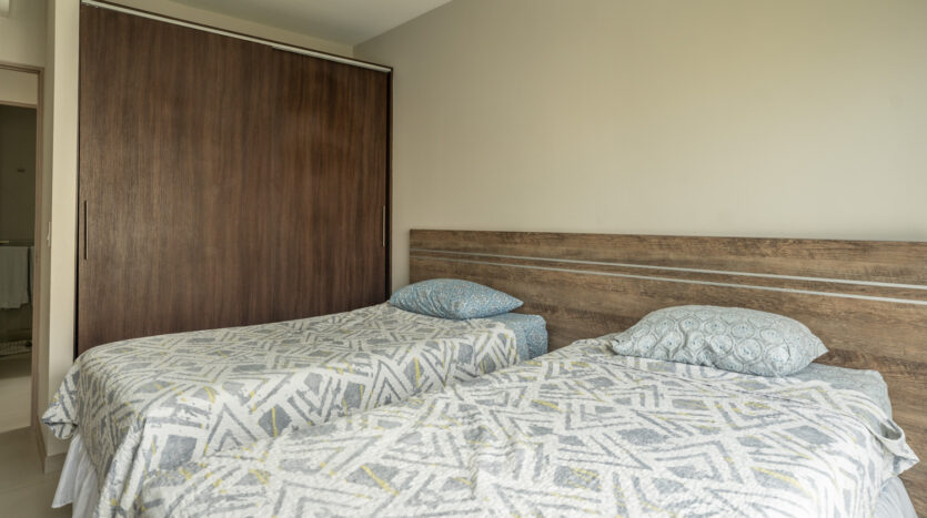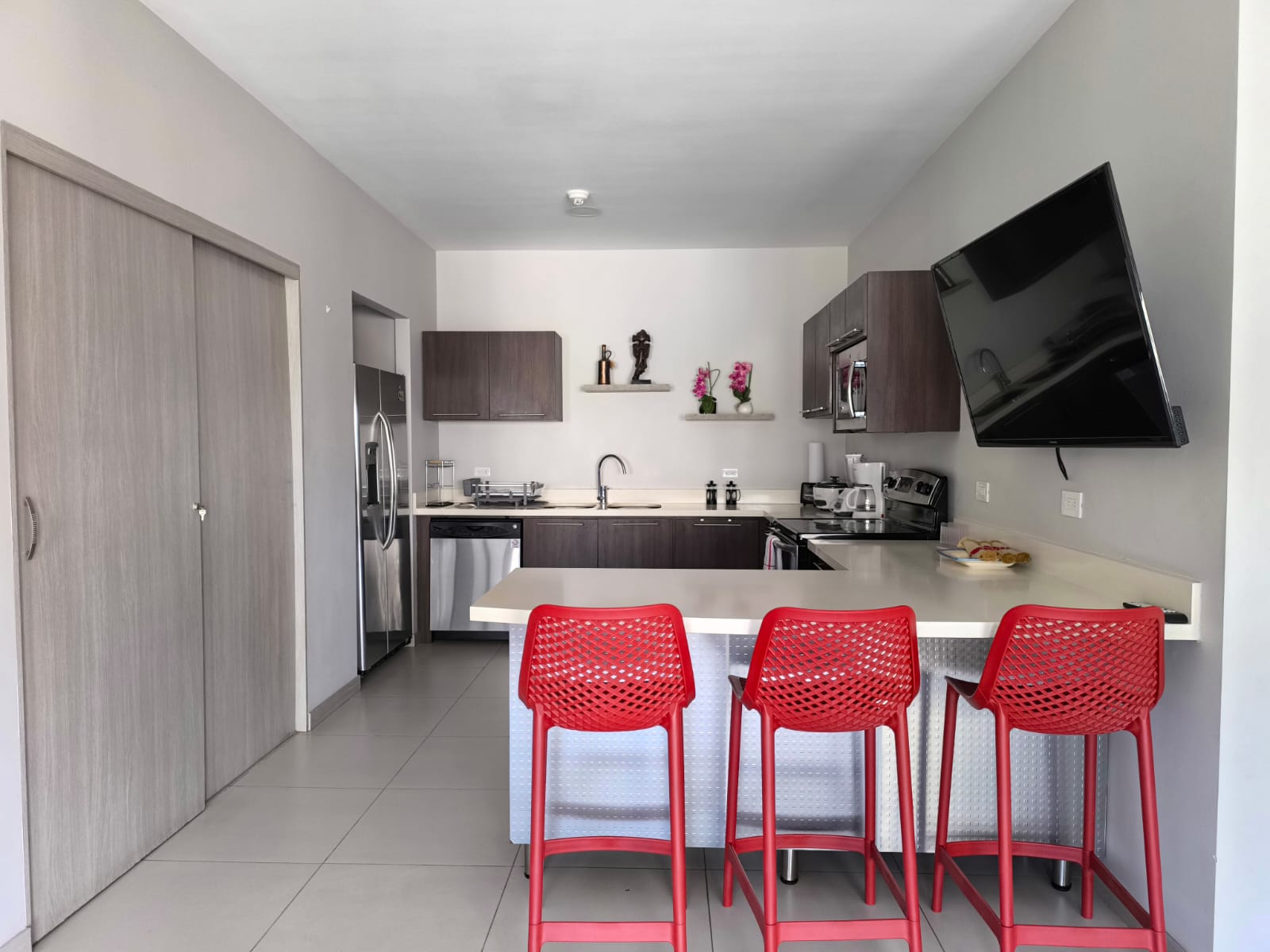 Amplio y con una gran piscina en las áreas comunes, cuenta con dos habitaciones y dos baños, además de una sala, comedor, cocina y balcón muy amplios.