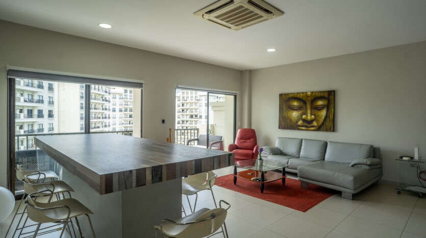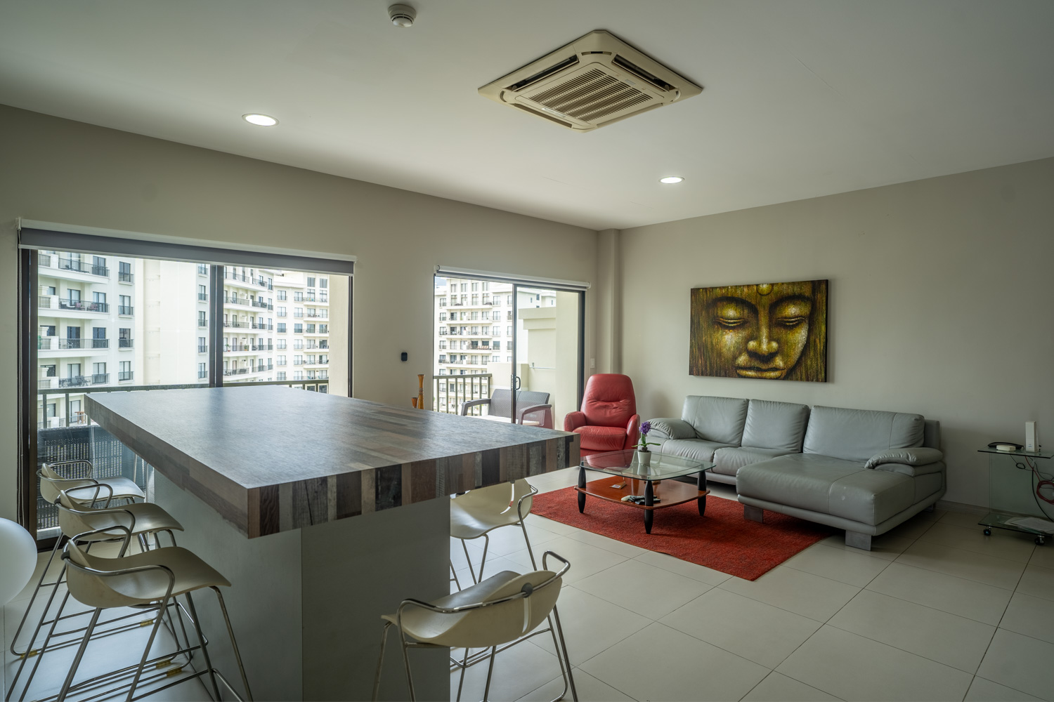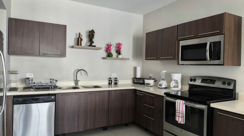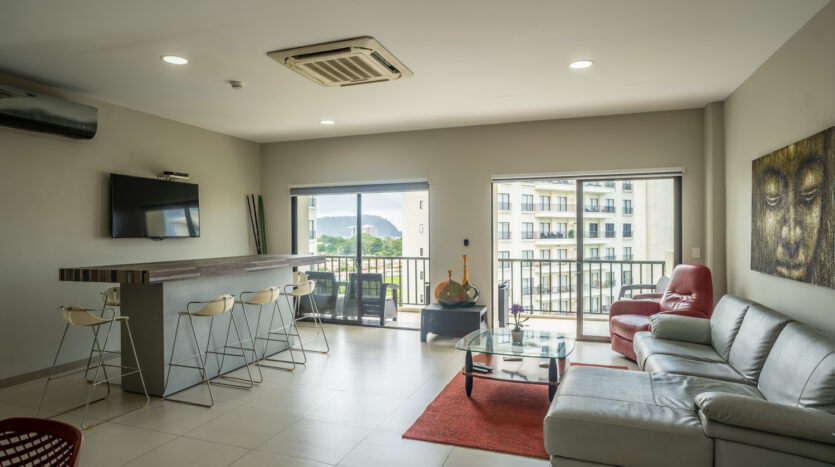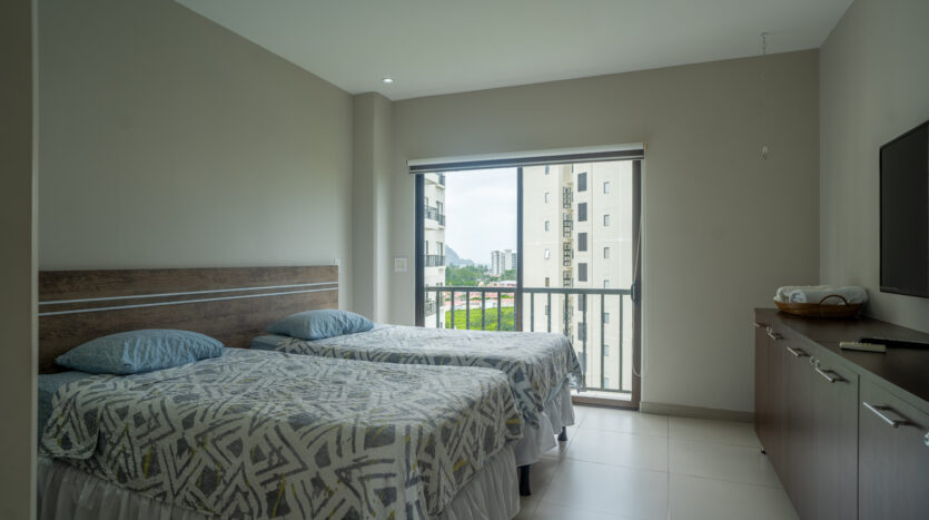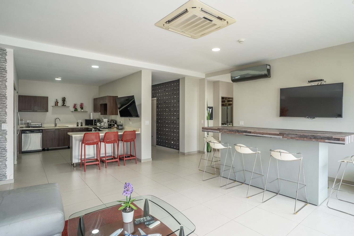Amplio y con una gran piscina en las áreas comunes, cuenta con dos habitaciones y dos baños, además de una sala, comedor, cocina y balcón muy amplios.