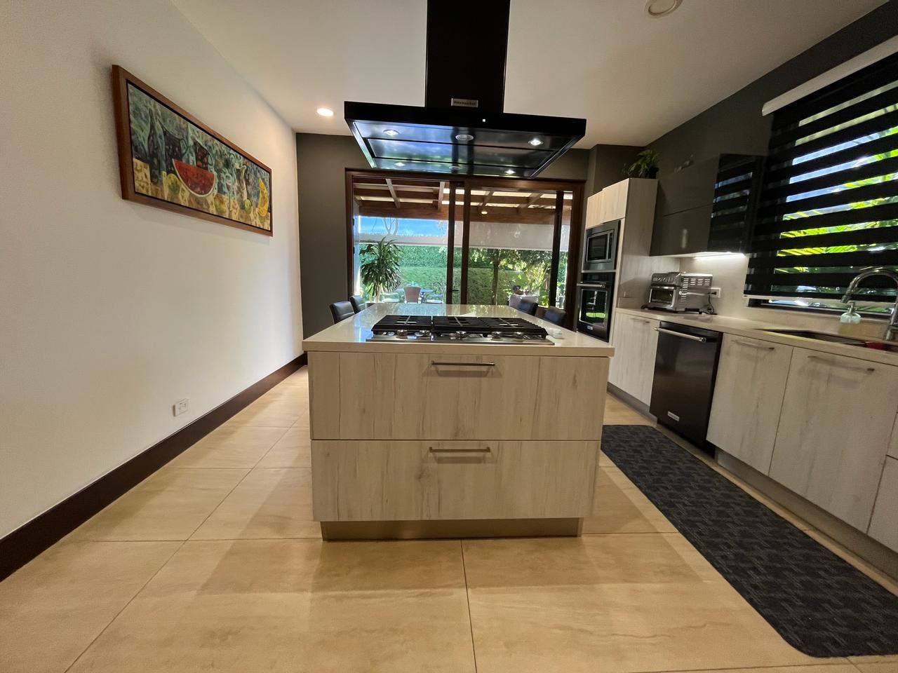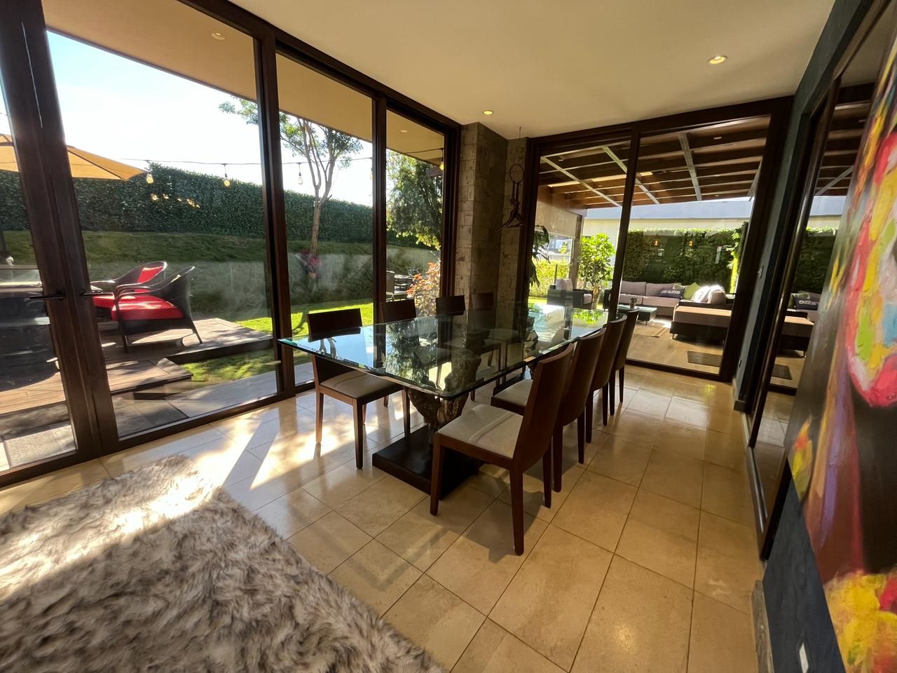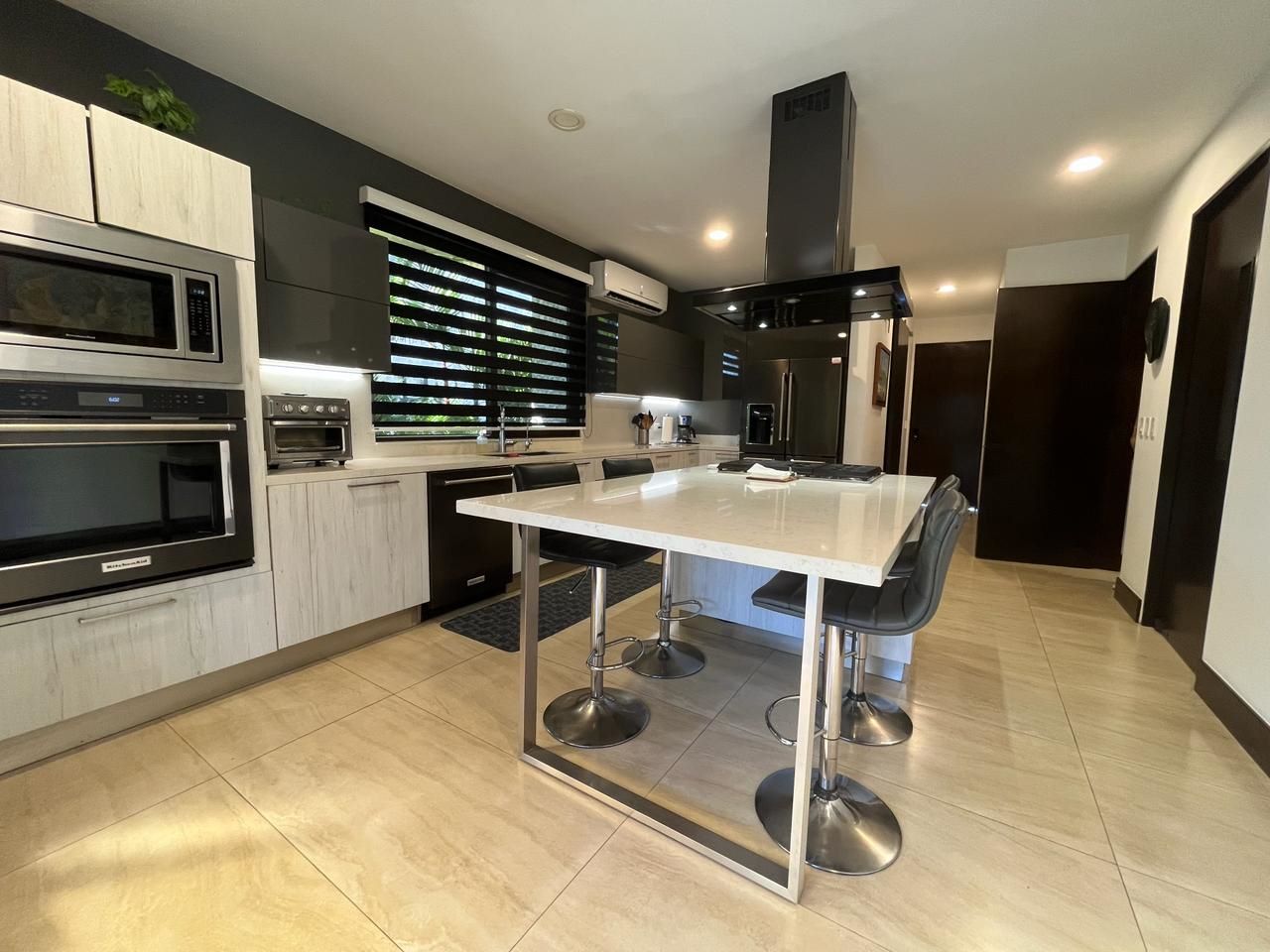 Por si fuera poco la casa está en un terreno de 631m2, con una construcción de 350m2, con cochera para 6 vehículos, baño de visitas, cuarto de servicio completo, área de pilas todo en la planta baja, además de una hermosa cocina empotrada con isla y extractor tipo campana, con sobre de cuarzo, la iluminación de la cocina, su amplitud y el desayunador permite que sea un lugar de encuentro y tertulia familiar y con amigos. La Sala y comedor muy amplias con ventanales que permiten disfrutar de la iluminación y la naturaleza, y dan acceso a dos amplias terraza ya un deck donde puede disfrutar de las tardes de café junto al fogón.
