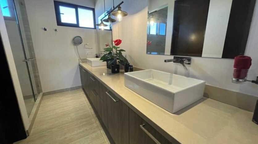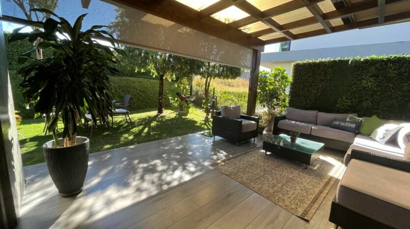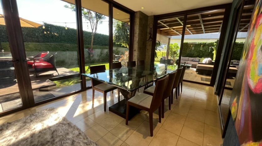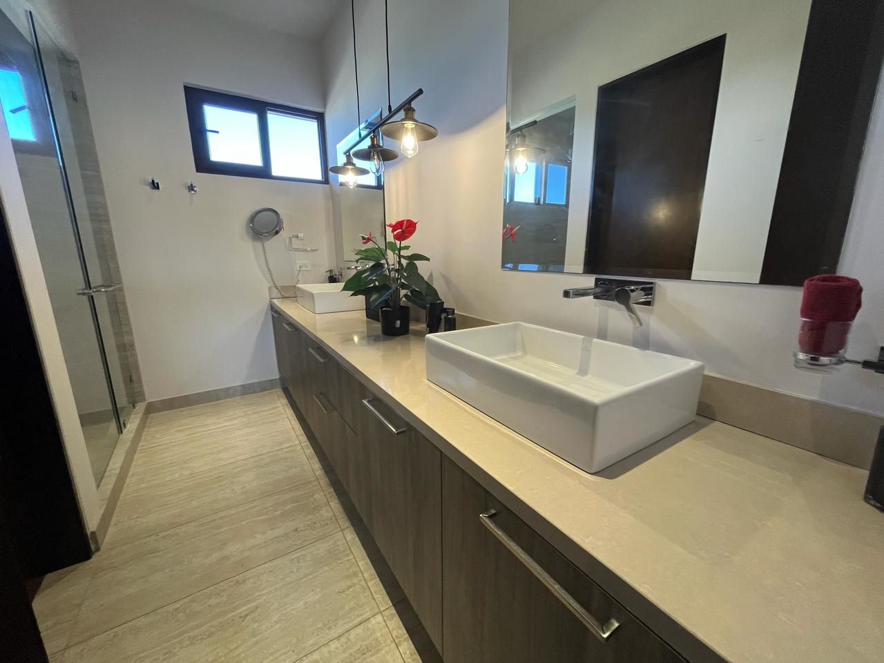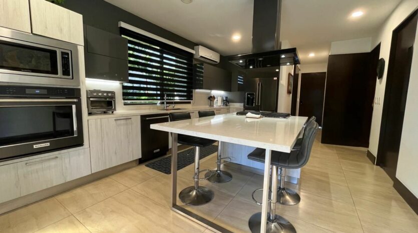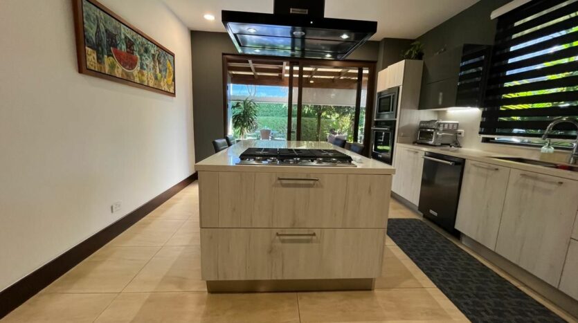Por si fuera poco la casa está en un terreno de 631m2, con una construcción de 350m2, con cochera para 6 vehículos, baño de visitas, cuarto de servicio completo, área de pilas todo en la planta baja, además de una hermosa cocina empotrada con isla y extractor tipo campana, con sobre de cuarzo, la iluminación de la cocina, su amplitud y el desayunador permite que sea un lugar de encuentro y tertulia familiar y con amigos. La Sala y comedor muy amplias con ventanales que permiten disfrutar de la iluminación y la naturaleza, y dan acceso a dos amplias terraza ya un deck donde puede disfrutar de las tardes de café junto al fogón.