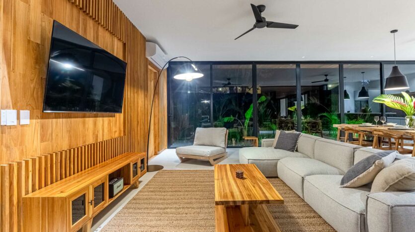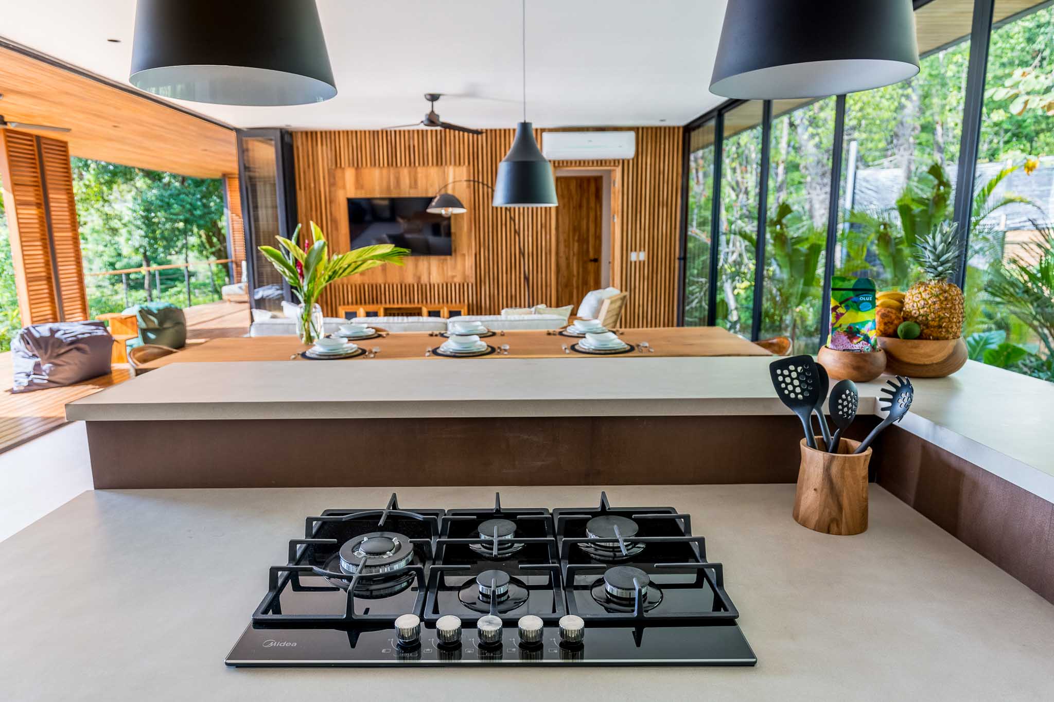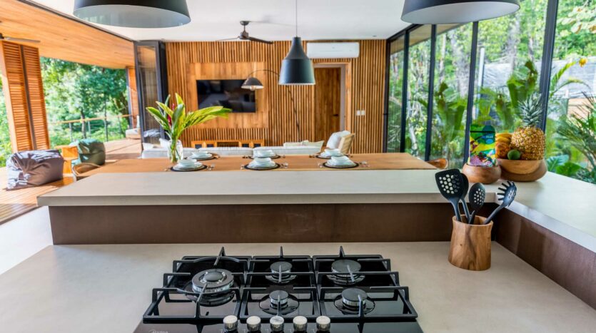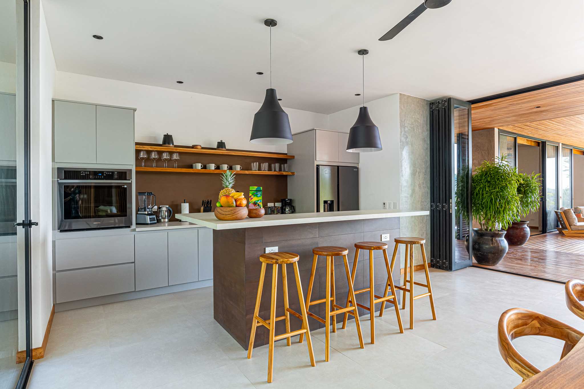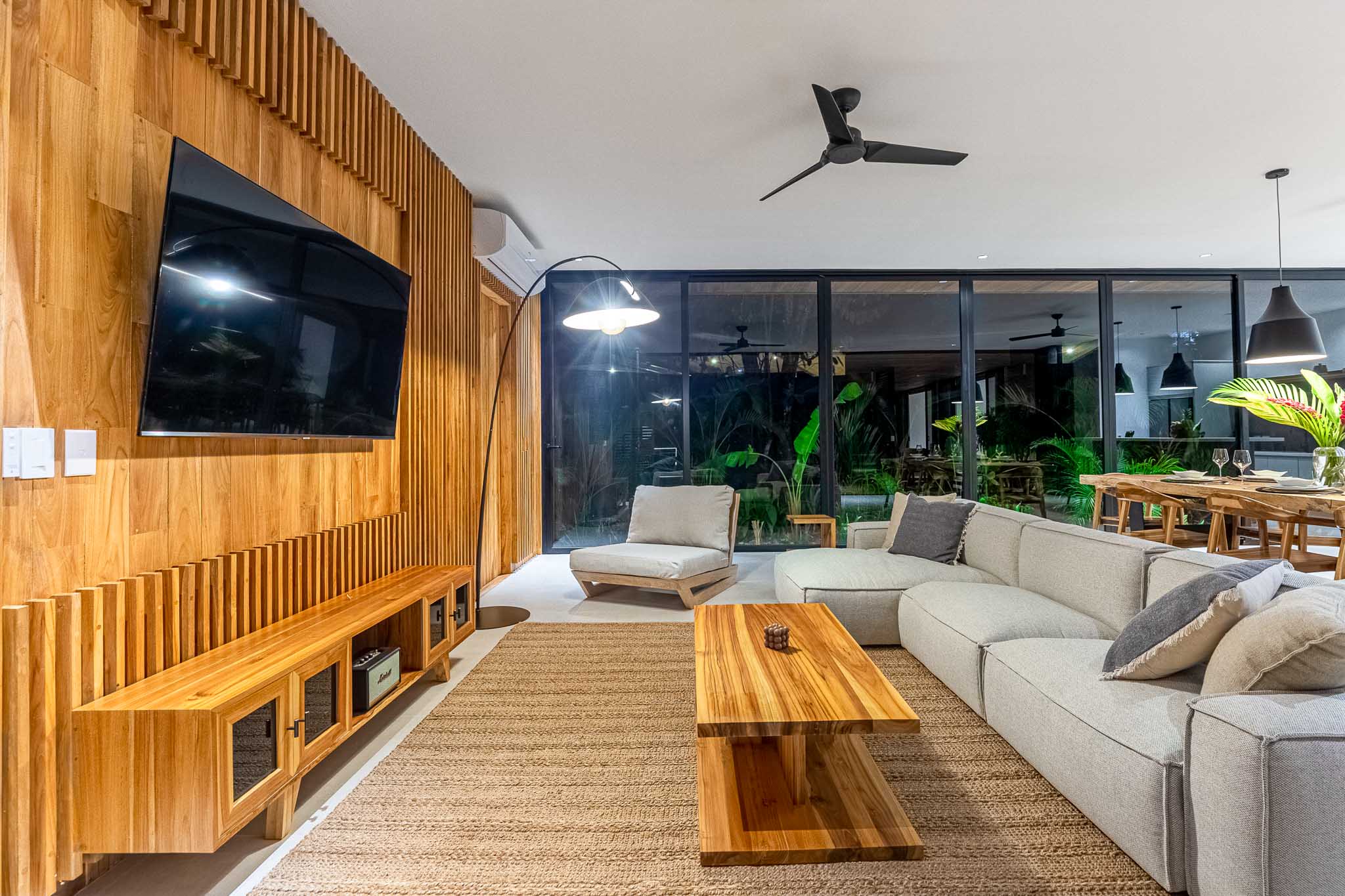 - 🌴 Tropical Charm: Custom oak and teak finishes, modern décor, and expansive glass doors invite natural light and showcase lush tropical surroundings.