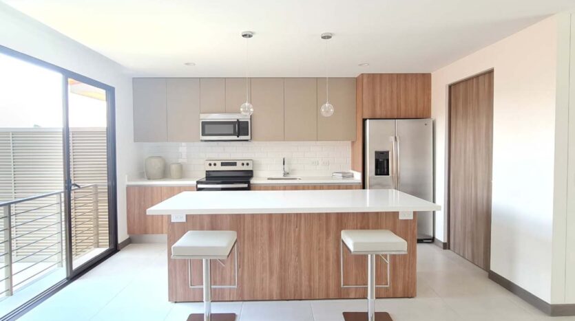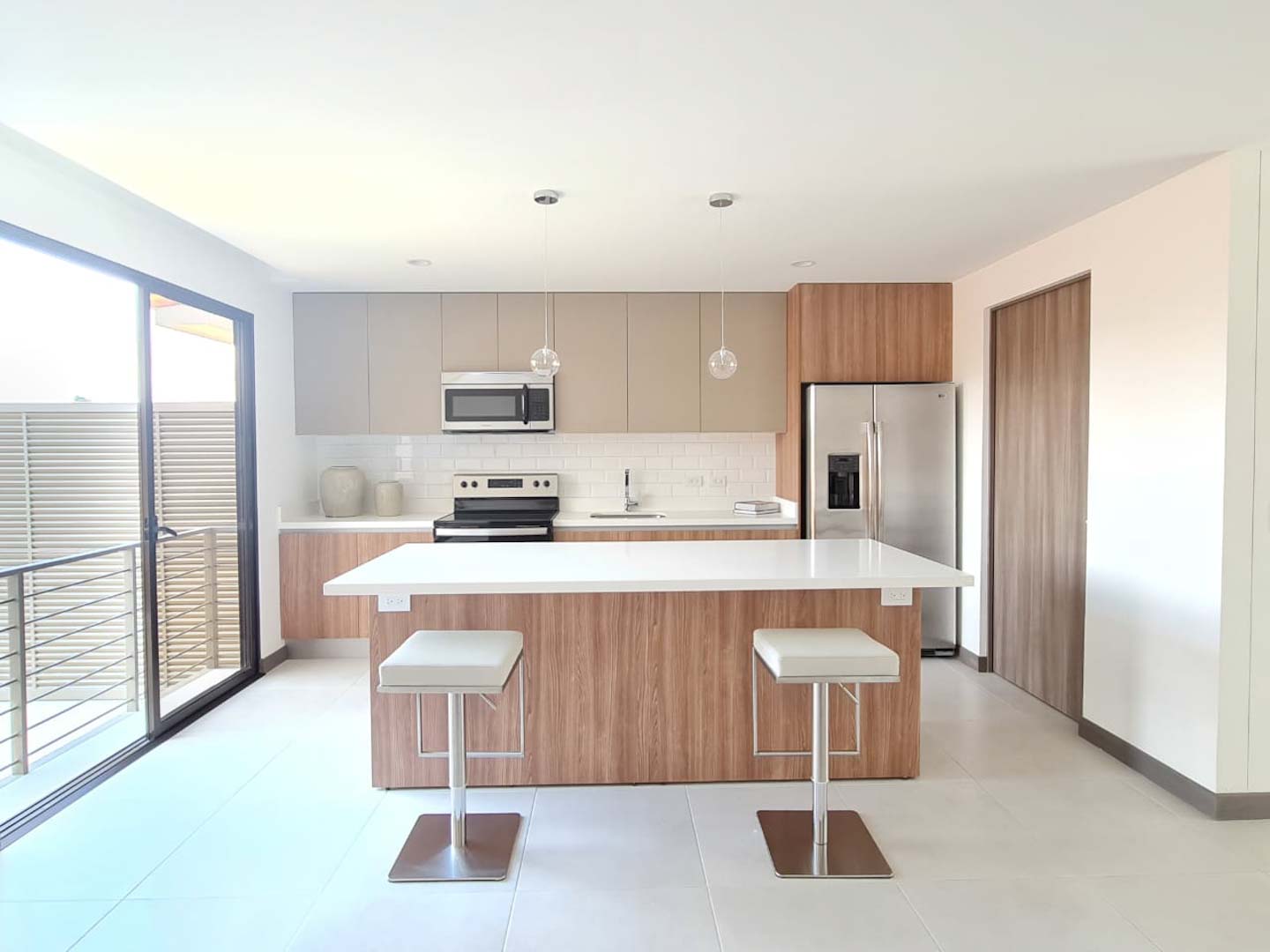 Cochera para 2 vehículos, sala-comedor, cocina italiana con sobre de cuarzo, terraza y cuarto de pilas.