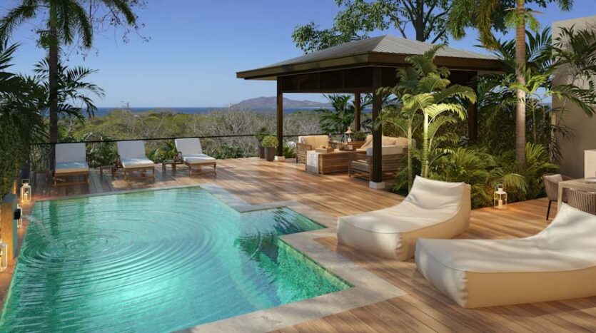 In two lots the developers are going to build an incredible 4 bedroom home with a total of 438m2/4713sf of construction size. All 4 bedrooms are master bedrooms/ensuite with a big walk-in closet. 3 of these bedrooms have an incredible ocean view and 1 has a gorgeous valley view over the National Park Marino de las Baulas and our finca.