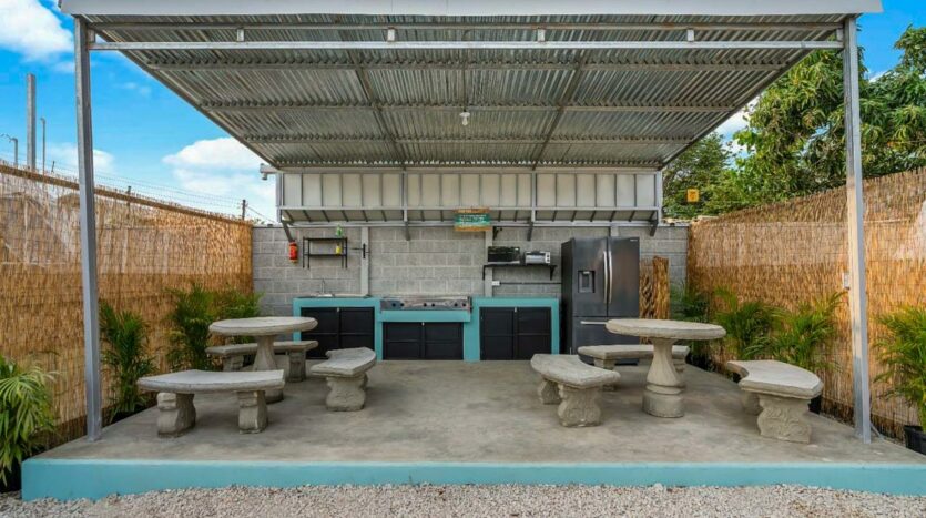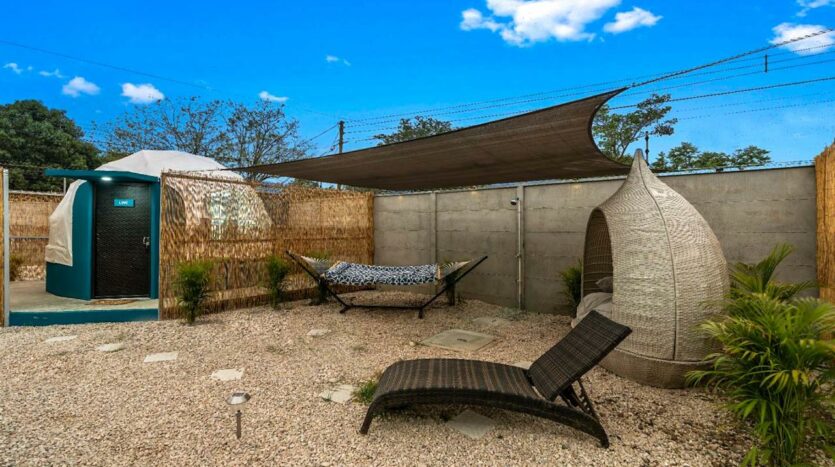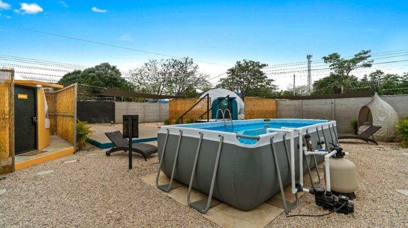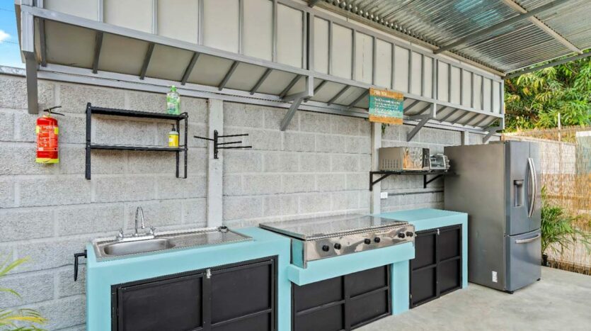 El resort también cuenta con una amplia cocina al aire libre y una refrescante piscina, ideal para relajarse después de explorar las espectaculares playas cercanas. La ubicación estratégica de esta propiedad no solo ofrece proximidad a Tamarindo, sino también acceso a una variedad de playas paradisíacas perfectas para actividades recreativas y turísticas.
