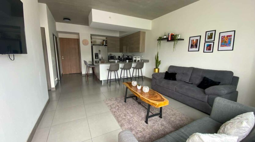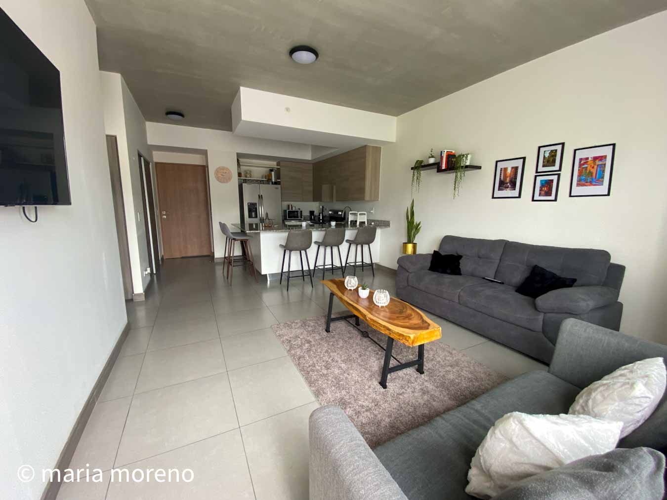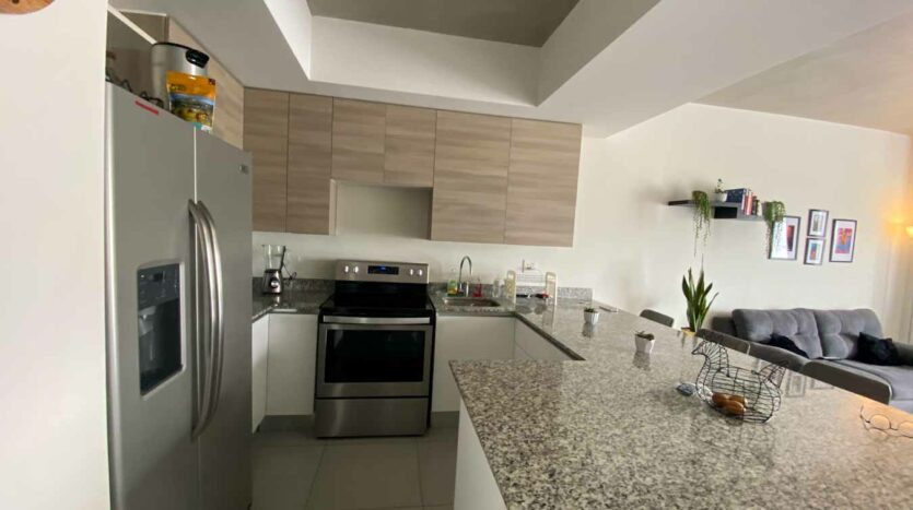 Este apartamento se distribuye en sala-comedor, cocina, cuarto de lavado, 2 habitaciones, 2 baños, 2 parqueos. En