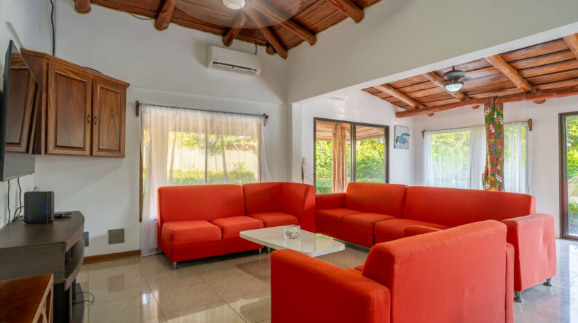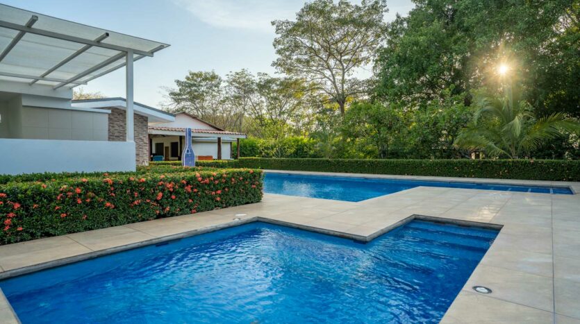 Impresionante propiedad en Tamarindo, Guanacaste, Costa Rica, donde el lujo y la naturaleza se unen para crear una experiencia incomparable! Con 5000m2 de lote y 300m2 de construcción, esta residencia ofrece un santuario de tranquilidad y elegancia. Sus exuberantes jardines proporcionan un ambiente sereno, mientras que su diseño de 3 dormitorios y 3 baños ofrece amplitud y comodidad para toda la familia. La sala de estar, el comedor y la cocina, iluminados y espaciosos, se conectan sin esfuerzo con terrazas que invitan a disfrutar de las vistas tropicales. Además, cuenta con un rancho de eventos equipado con barbecue, un amplio gimnasio con spa y sauna, y una impresionante piscina con wet bar, perfecta para relajarse y divertirse al aire libre. Con 2 parqueos techados y espacio para 6 vehículos adicionales, esta propiedad ofrece la comodidad y la privacidad que buscas. ¡No dejes pasar la oportunidad de vivir el estilo de vida de tus sueños en este paraíso costarricense! Contáctanos hoy para más detalles y para programar una visita. Esta propiedad es ideal para rentas vacacionales y Fiestas, celebraciones y eventos corporativos y familiares.