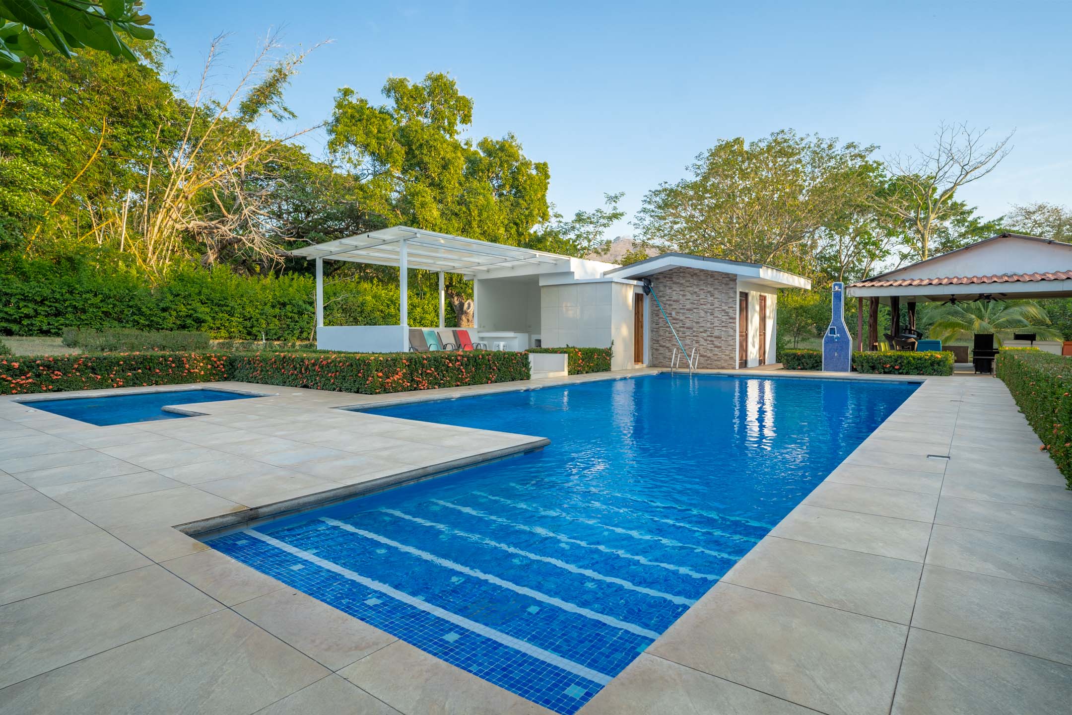 Discover this stunning property in Tamarindo, Guanacaste, Costa Rica, where luxury and nature converge to create an unparalleled experience! With 5000m2 of land and 300m2 of construction, this residence offers a sanctuary of tranquility and elegance. Its lush gardens provide a serene environment, while its 3 bedrooms and 3 bathrooms design offers spaciousness and comfort for the whole family. The living room, dining area, and kitchen, illuminated and spacious, effortlessly connect with terraces that invite you to enjoy tropical views. Additionally, it features an event ranch equipped with barbecue, a spacious gym with spa and sauna, and an impressive pool with wet bar, perfect for relaxation and outdoor fun. With 2 covered parking spaces and room for 6 additional vehicles, this property offers the convenience and privacy you seek. Don’t miss the opportunity to live the lifestyle of your dreams in this Costa Rican paradise! Contact us today for more details and to schedule a visit. This property is ideal for vacation rentals and parties, celebrations, and corporate and family events.