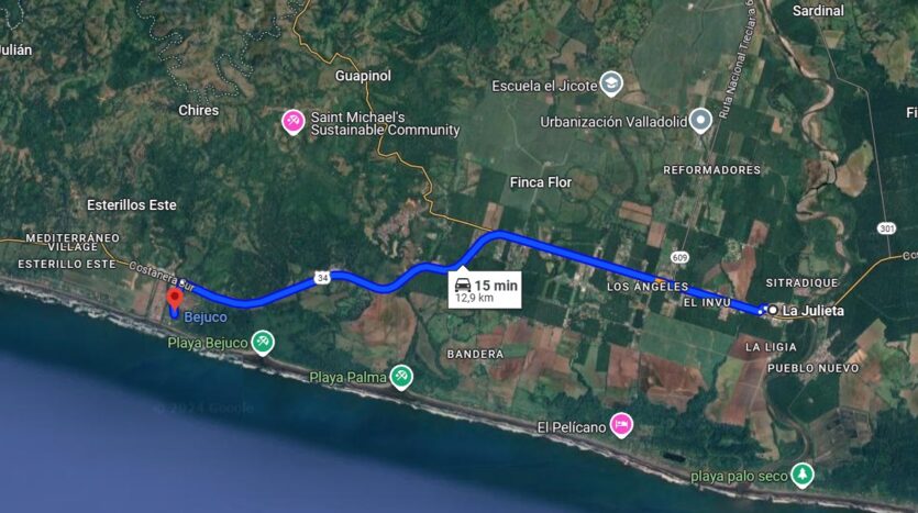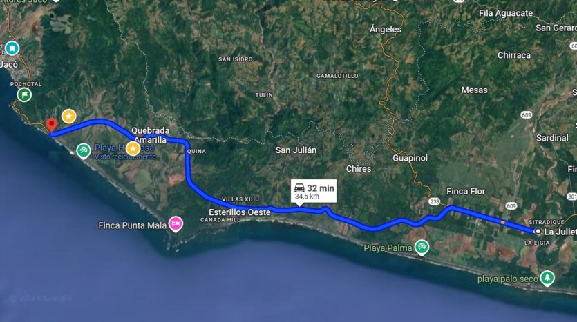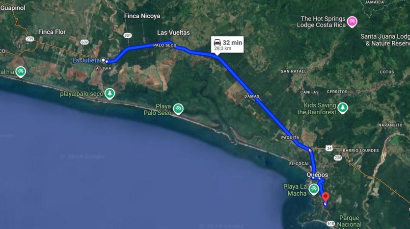 Ubicada en La Julieta en el Cantón de Parrita, a solo minutos caminando de todo el comercio que ofrece Parrita, Bancos, supermercados, tiendas y restaurantes, su ubicación privilegiada le permite disfrutar de las mejores playas del Pacifico central a solo 30 minutos del Parque Nacional Manuel Antonio, 15 minutos de playa Bejuco, 20 minutos de Esterillos , 30 minutos de Playa Hermosa de Jaco.