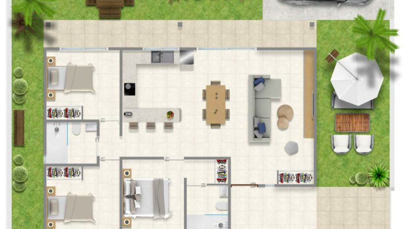 Upon entering, you’ll find spacious and bright spaces where the living room, dining area, and kitchen integrate harmoniously, creating a perfect setting for enjoying memorable moments with family and friends. The kitchen is equipped with top-quality finishes, providing functionality and style to delight culinary enthusiasts.