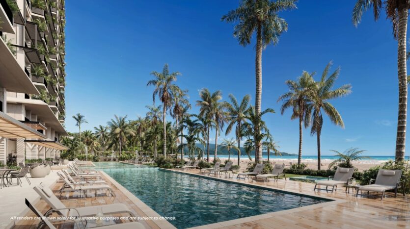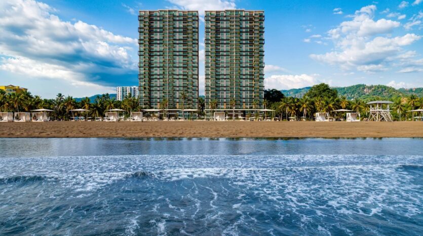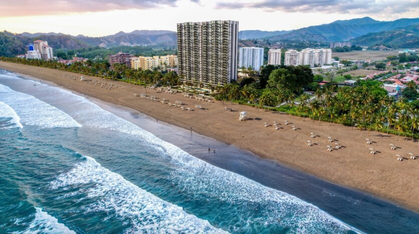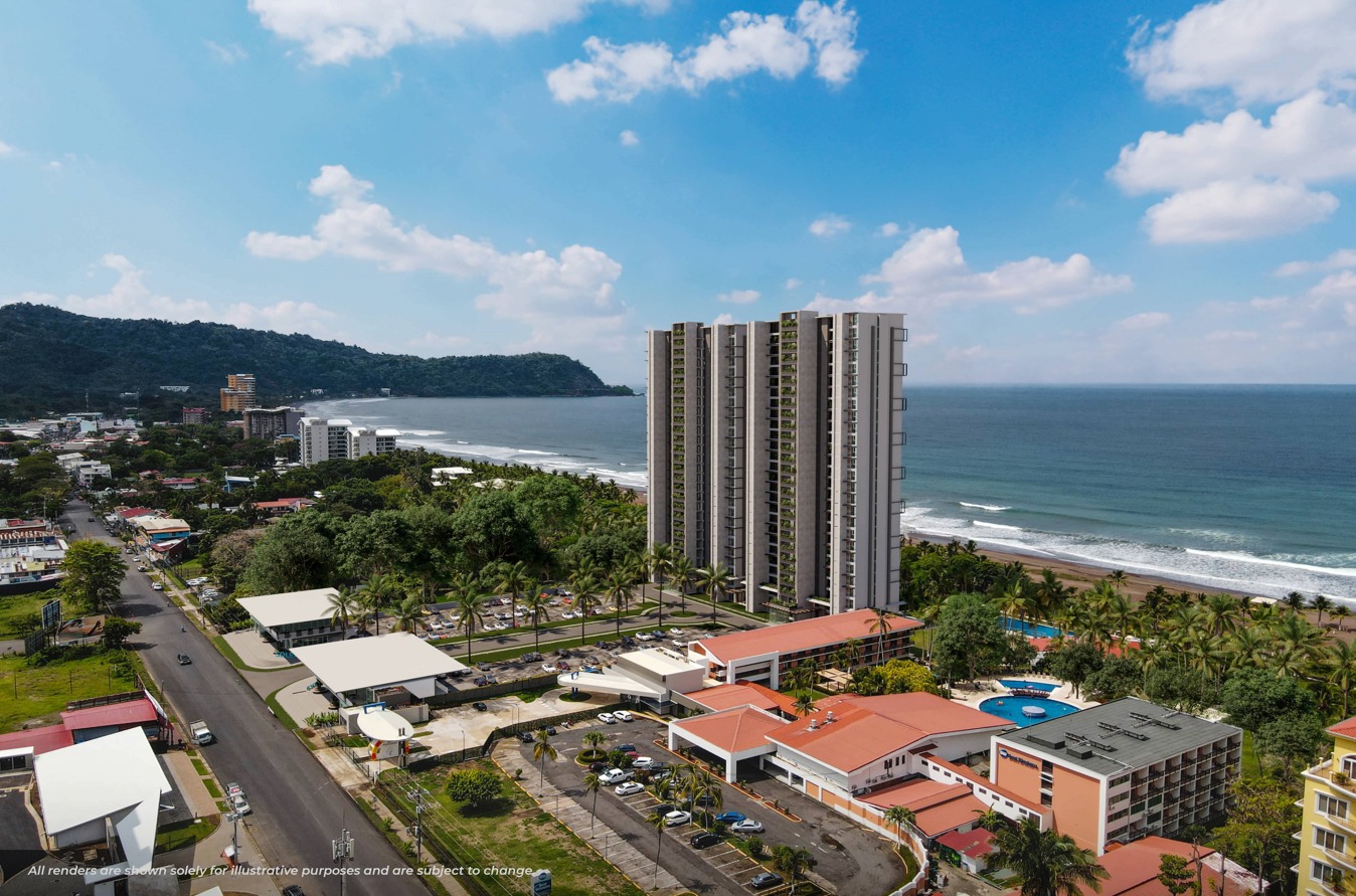 Terraquea tiene a la venta este nuevo proyecto de playa en PRE-VENTA, una exquisita torre de condominios de 27 pisos frente al mar, donde TODAS las residencias ofrecerán impresionantes vistas de la puesta de sol sobre el Océano Pacífico. Disfrute de la serenidad de las exuberantes montañas que rodean Jaco desde las habitaciones traseras.