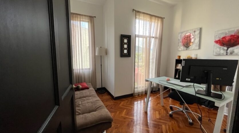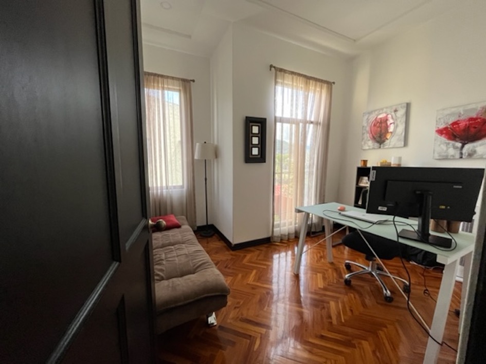 La casa cuenta con 4 habitaciones dos habitaciones cuentan con su respectivo baño y las otras dos habitaciones comparten un baño. Asimismo, la casa tiene un medio baño de visitas y una amplia sala de televisión, así como una amplia cocina y una terraza perfecta para actividades sociales. cabe señalar, que la Casa cuenta con un cuarto adicional y un baño de servicio.La propiedad se ubica en Trejos Montealegre en un condominio de pocas unidades, la ubicación de la propiedad es estrategica, ya que se ubica en una zona de alta plusvalía, muy cerca de centros comerciales, centros educativos, entre otros.