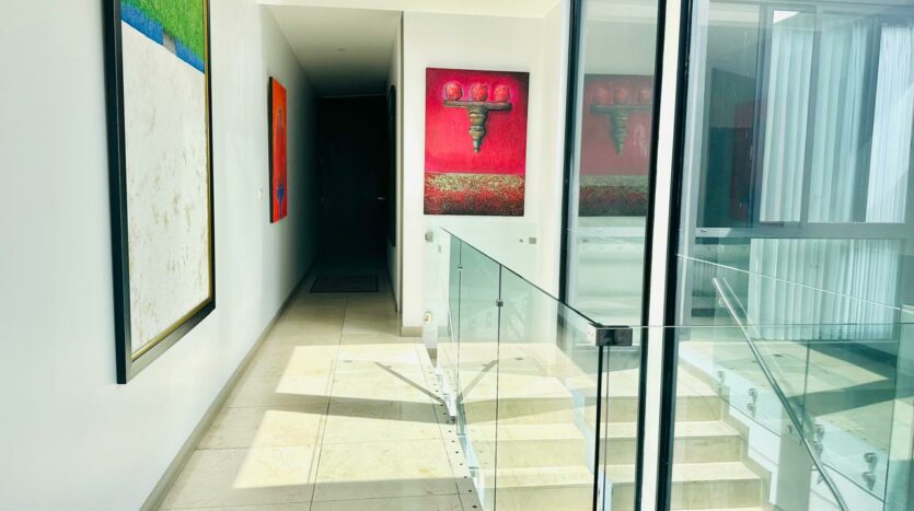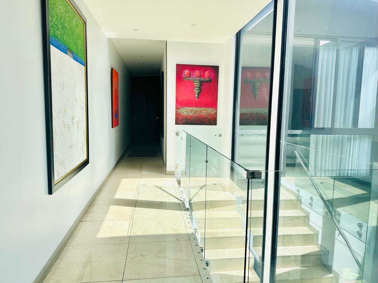La casa tiene espacio de parqueo para 2 vehículos bajo techo, en el primer piso encontramos la habitación principal, con ventanales amplios, walk-in-closet, baño completo, cocina amplia empotrada, con extractor de campana, sala amplia con comedor, terraza con preciosas vistas, al bajar las gradas encontramos una espaciosa sala de tv, con 2 habitaciones secundarias con baño compartido, otra terraza interna y habitación de servicio con baño completo.