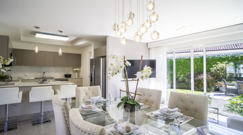 La casa cuenta con una amplia y Lujosa Cocina de 3.3 X 3.85m2, construida con un hermoso sobre de cuarzo; adicionalmente el primer nivel consta de Sala, Comedor y Sala de TV, medio baño, Jardín/Terraza, 2 parqueos bajo techo y posibilidad de 2 vehículos más al descubierto. El segundo Nivel cuenta con la Habitación Principal de 3.9 X 4m2 sumado a su balcón, Walk in Closet y baño. Las habitaciones secundarias cuentan con su propio closet y tienen una medida total de 3.9 X 3.9m2 dando el espacio necesario para sus hijos. Adicionalmente el segundo Nivel cuenta con una sala de TV y baño completo. Amplios Lotes desde 200m2 aproximados, dando un hermoso Jardín externo e interno.