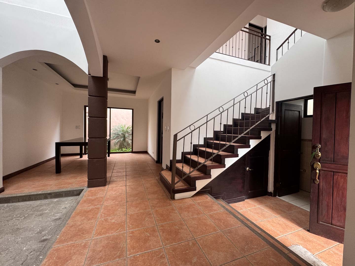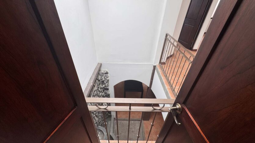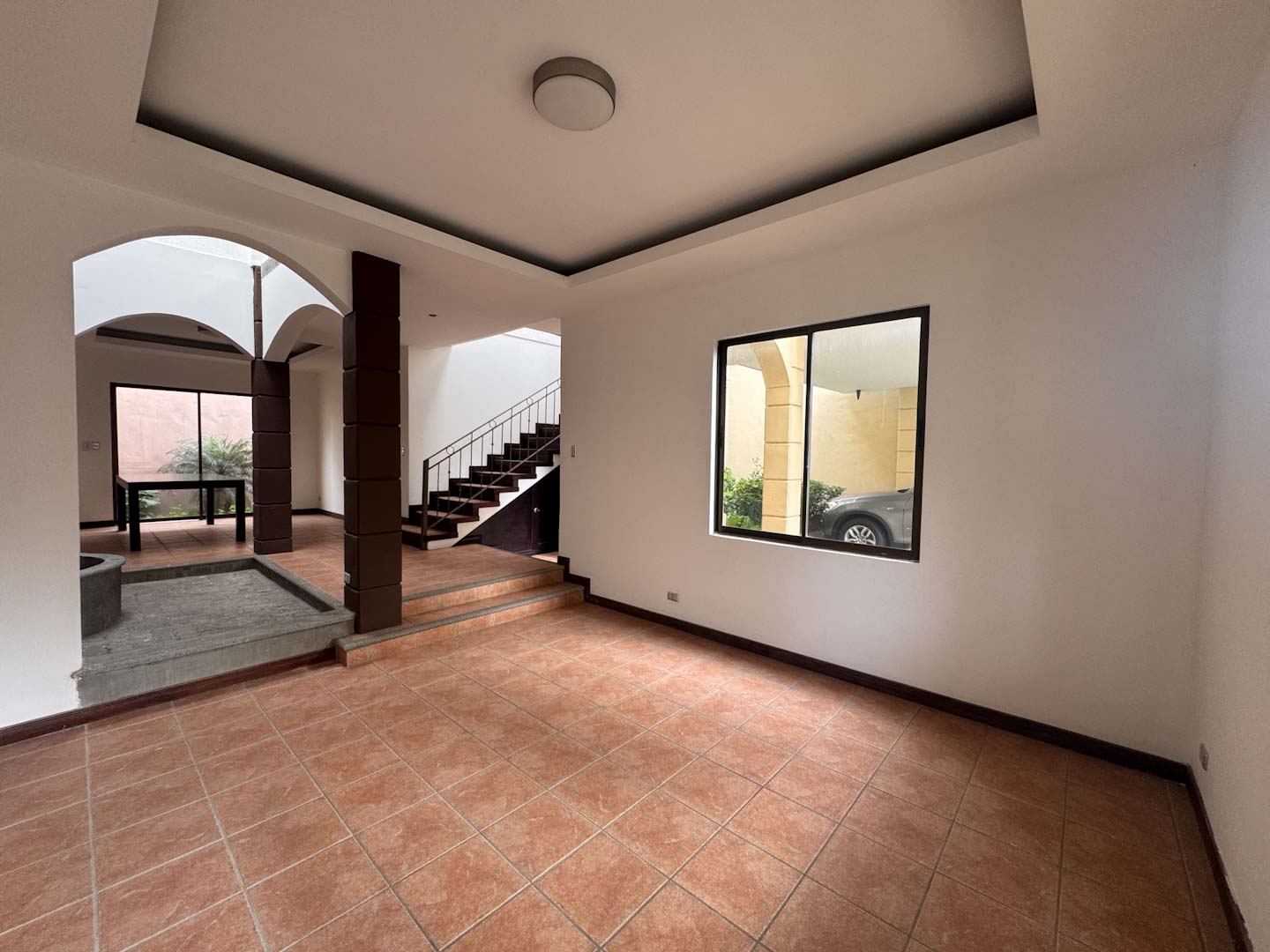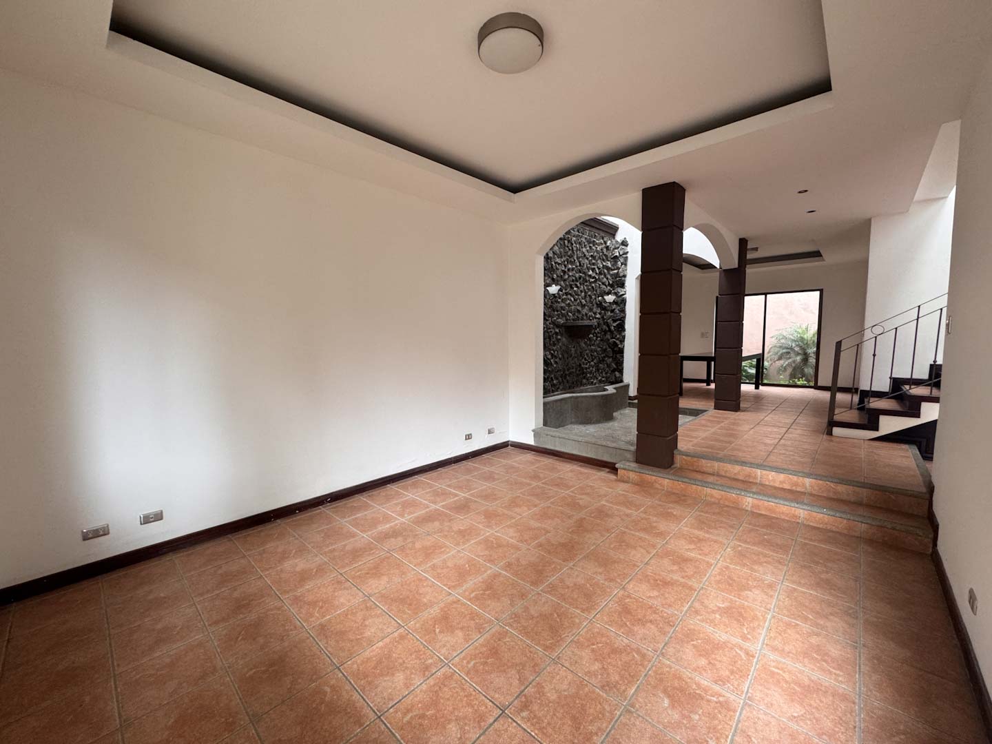 - Espacios sociales acogedores: Sala y comedor independientes, divididos por una fuente decorativa y una pared llorona que brindan un toque de distinción.