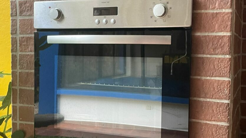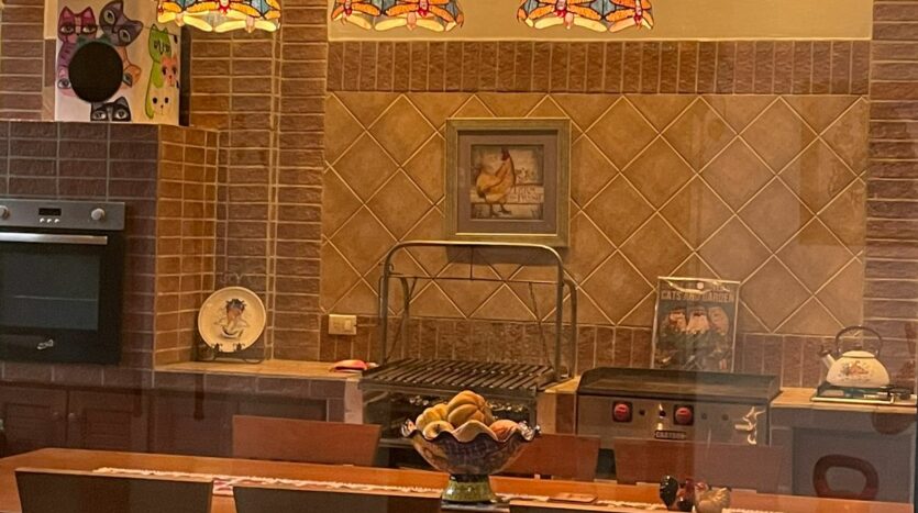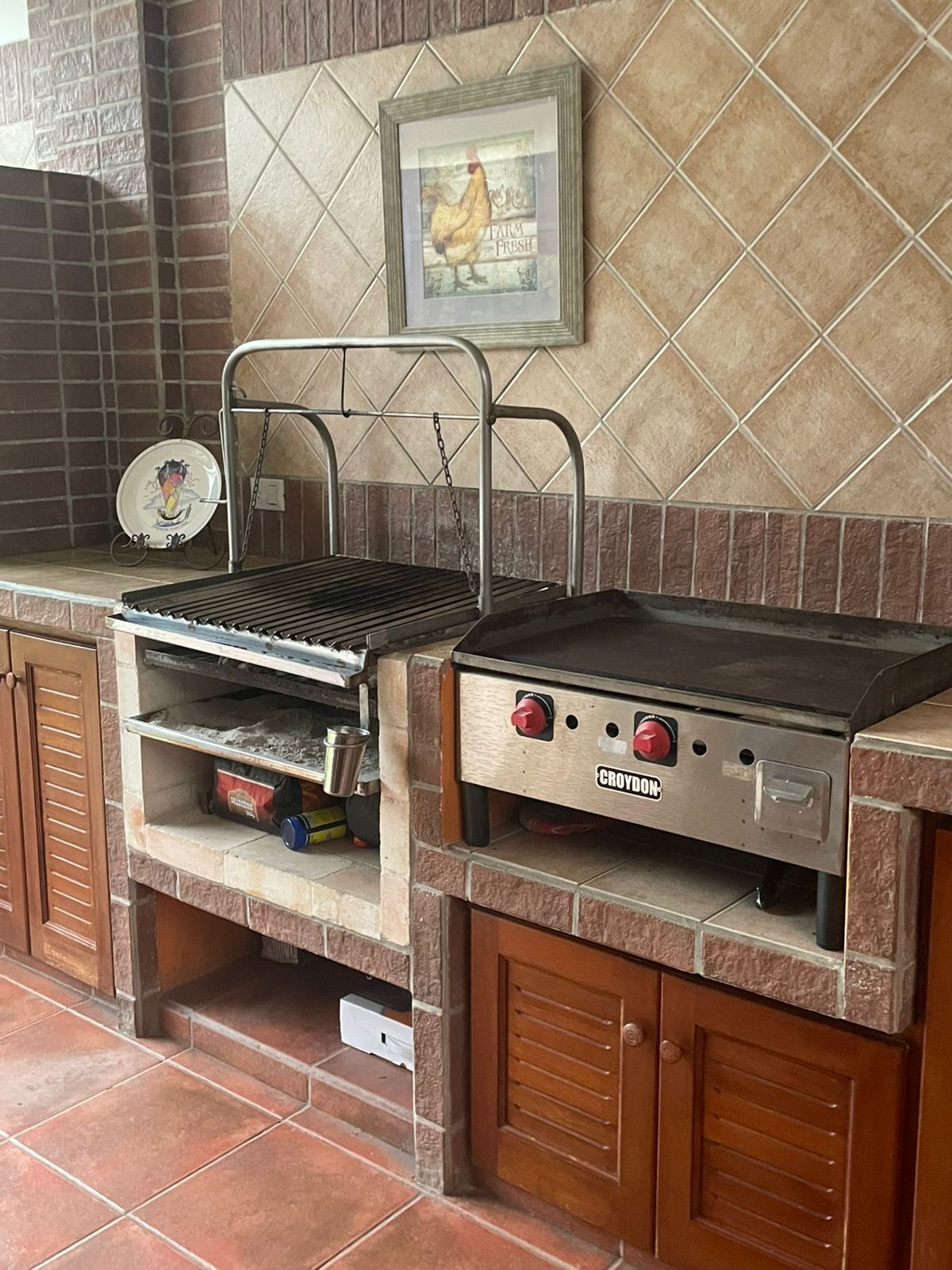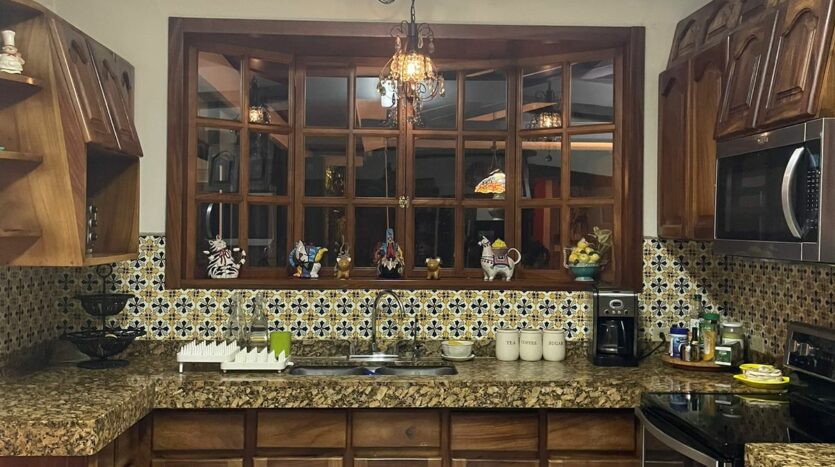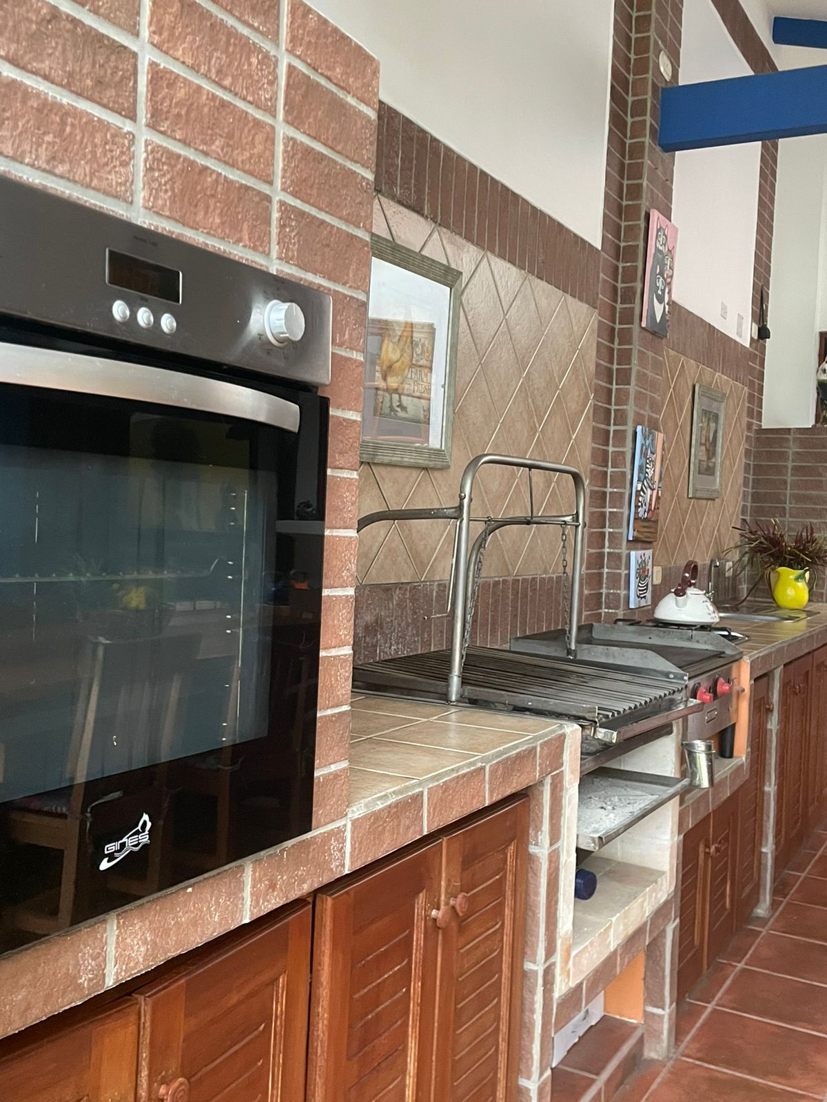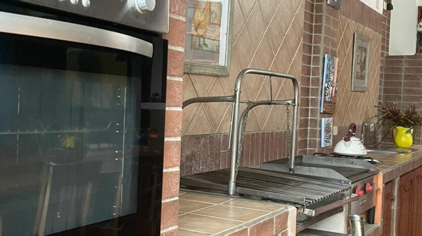 Cocina espaciosa con mueble en cedro amargo, cocina de gas, horno y plancha