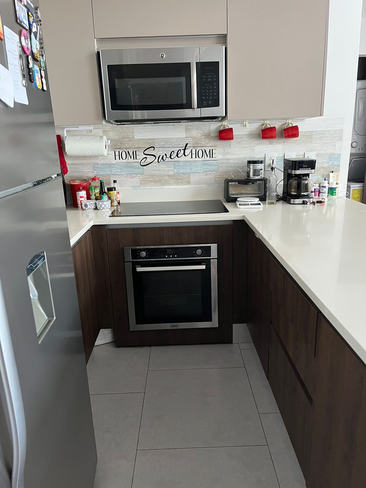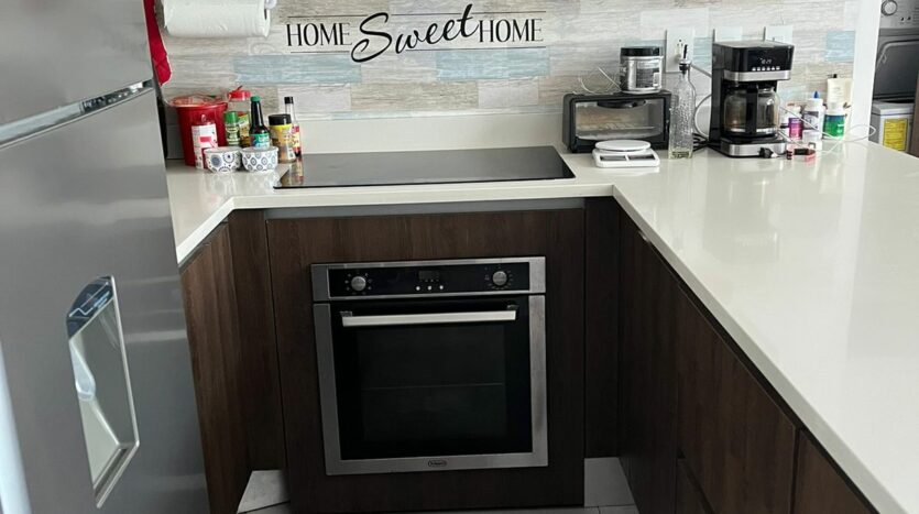 • Apartamento de una habitación, con línea blanca: plantilla y horno empotrados, así como microondas y extractor. Lavadora/secadora.