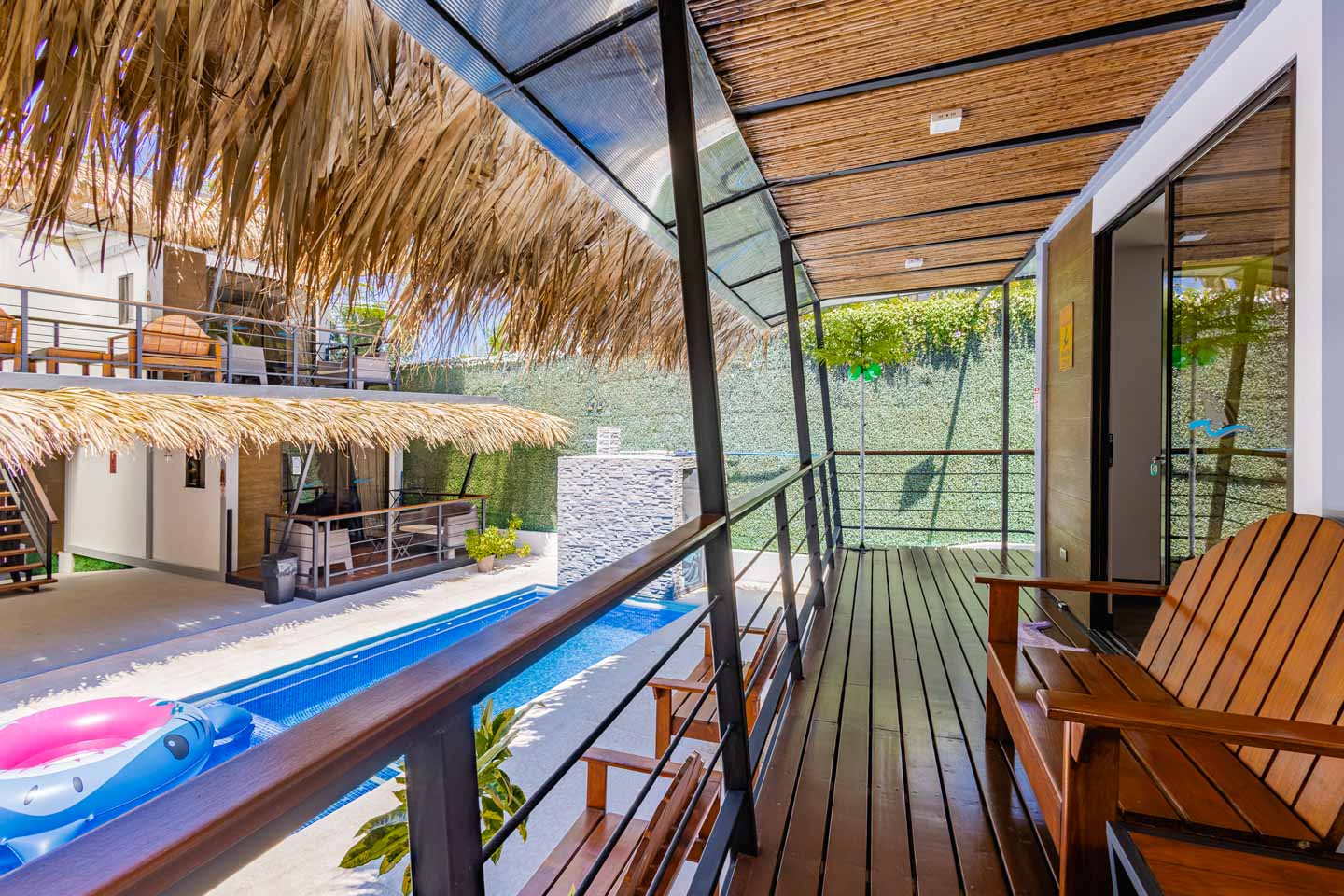 Dos encantadores estudios: en torres de dos pisos, completamente equipados con baño privado, kitchenette, aire acondicionado y balcón con vista a la piscina. 🏡