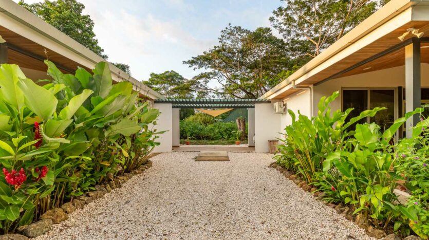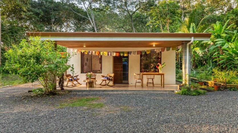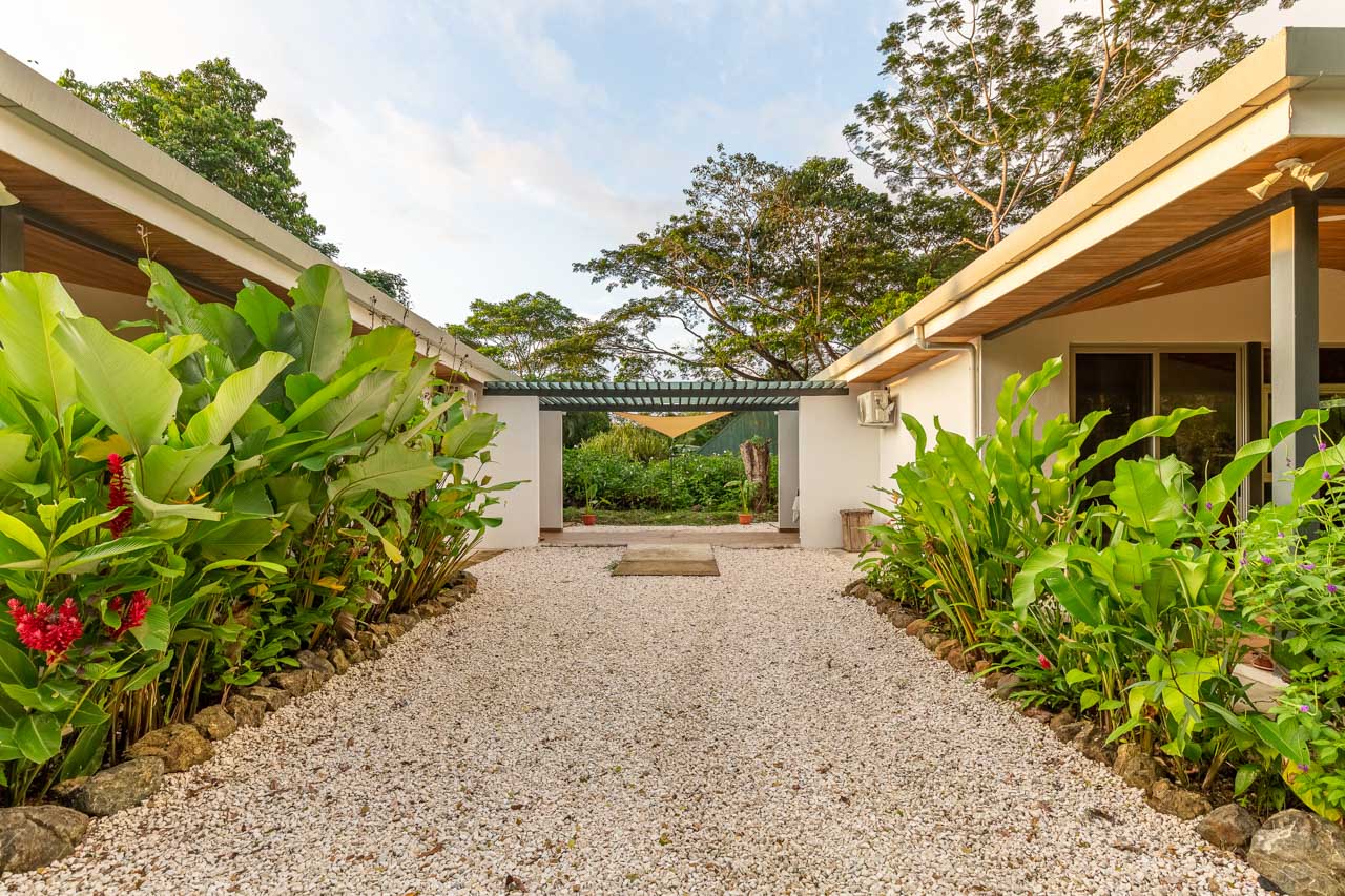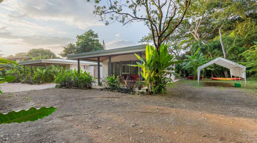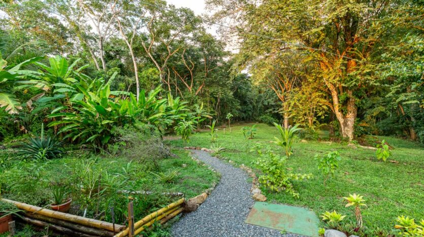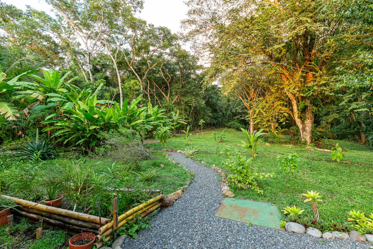 El jardín cuenta con árboles de guanábana, papaya, plátano, banano, cacao y un pequeño invernadero. Una propiedad única en una zona tranquila y natural de la Península de Nicoya.