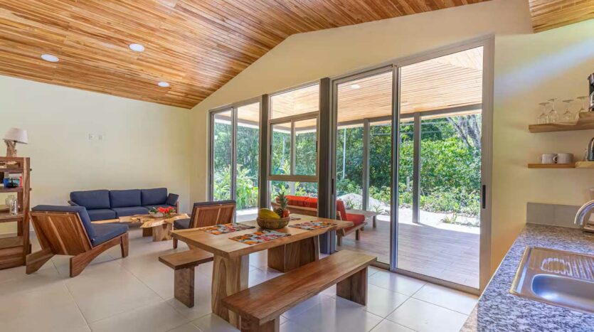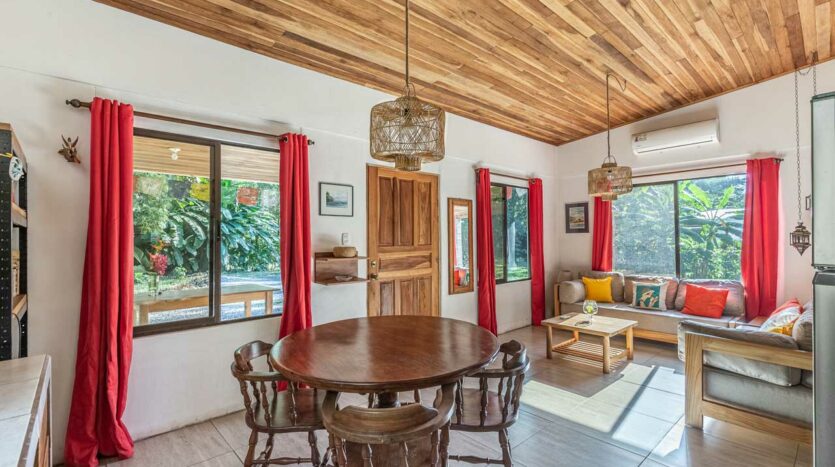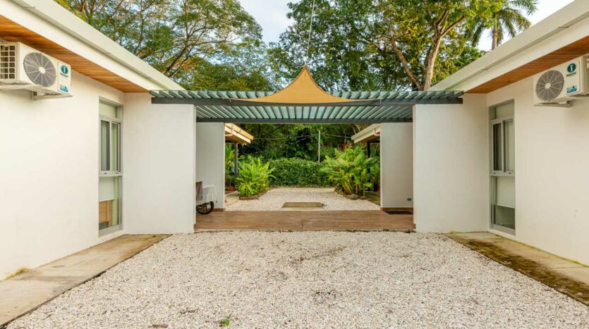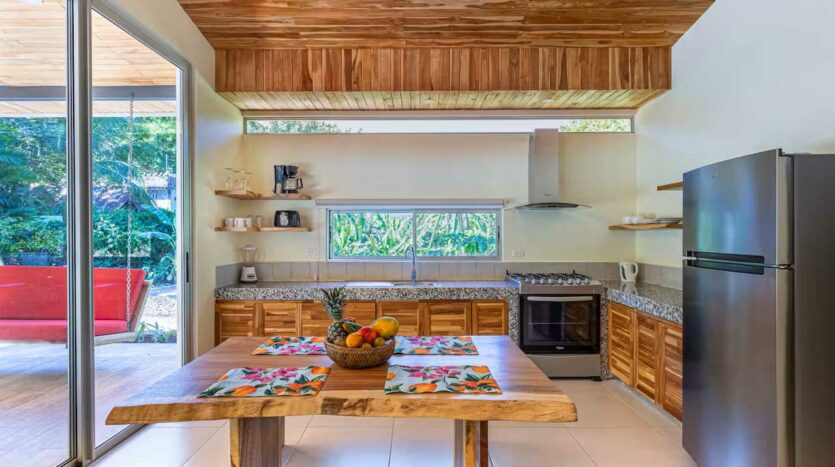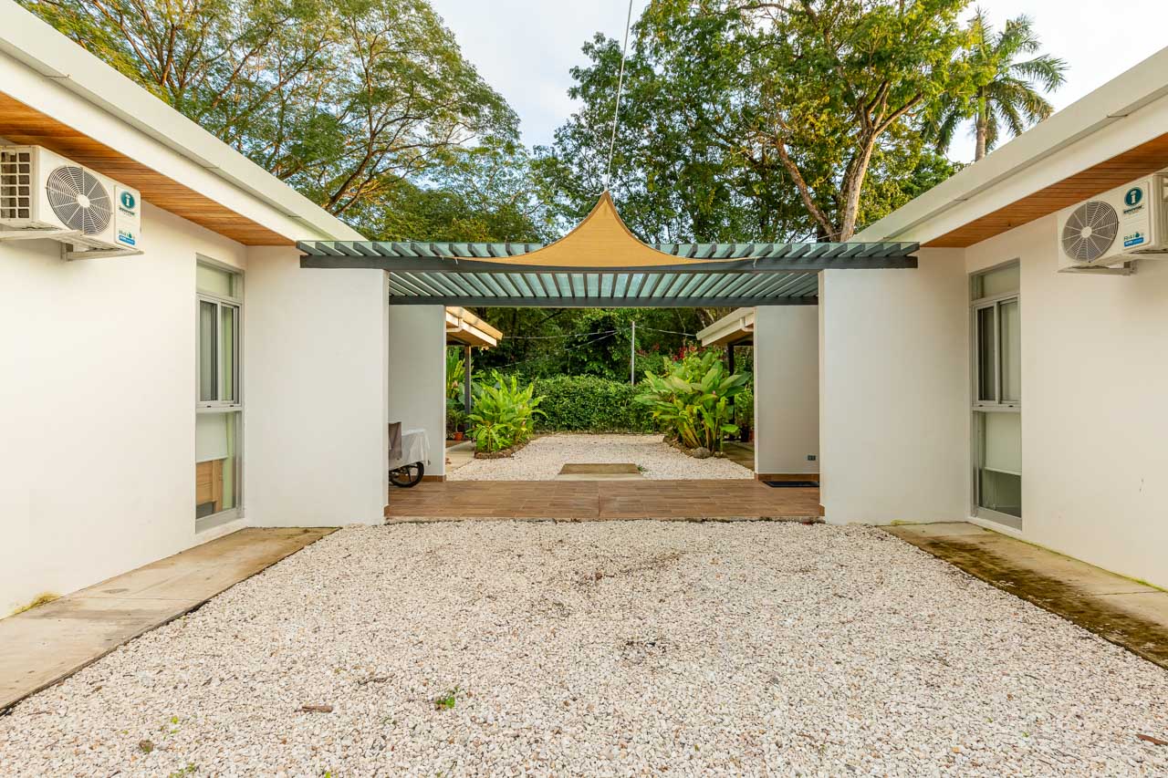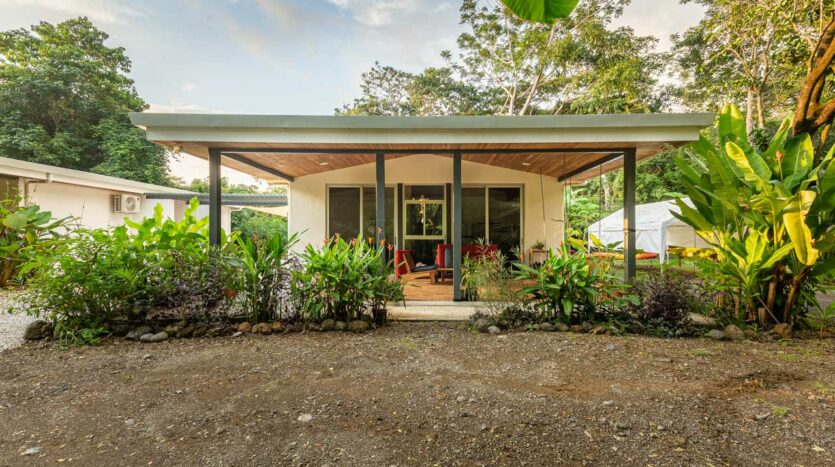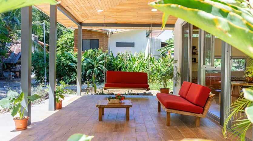 El jardín cuenta con árboles de guanábana, papaya, plátano, banano, cacao y un pequeño invernadero. Una propiedad única en una zona tranquila y natural de la Península de Nicoya.