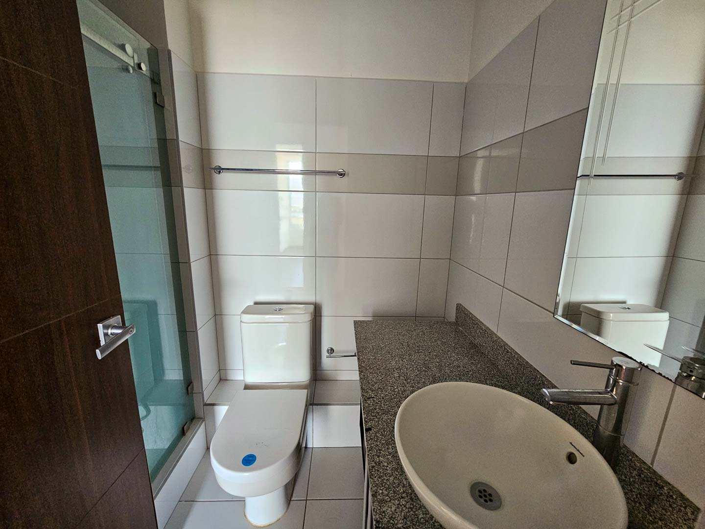 El apartamento se ubica esquinero en la Torre y se distribuye en sala, comedor, cocina, 1 habitación secundaria, 1 baño completo, balcón, habitación principal con walk in closet y baño privado y 2 espacios de parqueo.