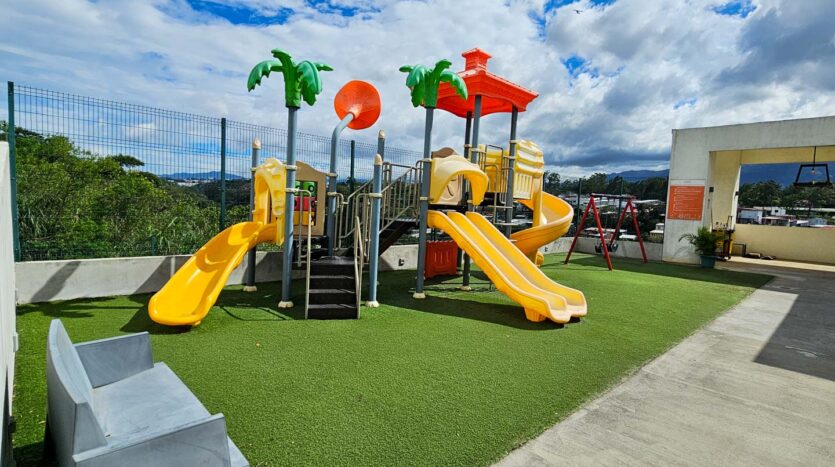 En un condominio con múltiples amenidades como casa club, gimnasio, piscina con carril de nado, sala de eventos, juegos para niños, parque para mascotas y espectacular vista.