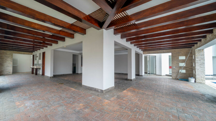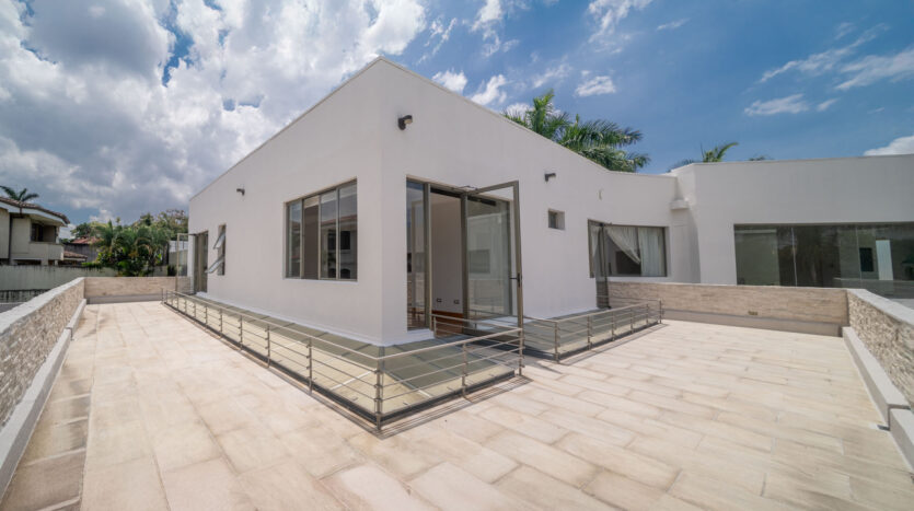 Parqueo enorme, cuarto lavado, cocina, dos alacenas grande, cuarto servicio, terraza para fiestas muy amplia con piscina, dos baños completos en terraza , cuarto servicio con baño completo , jardín enorme, dos aposentos grandes para sala u oficina + otra sala enorme.