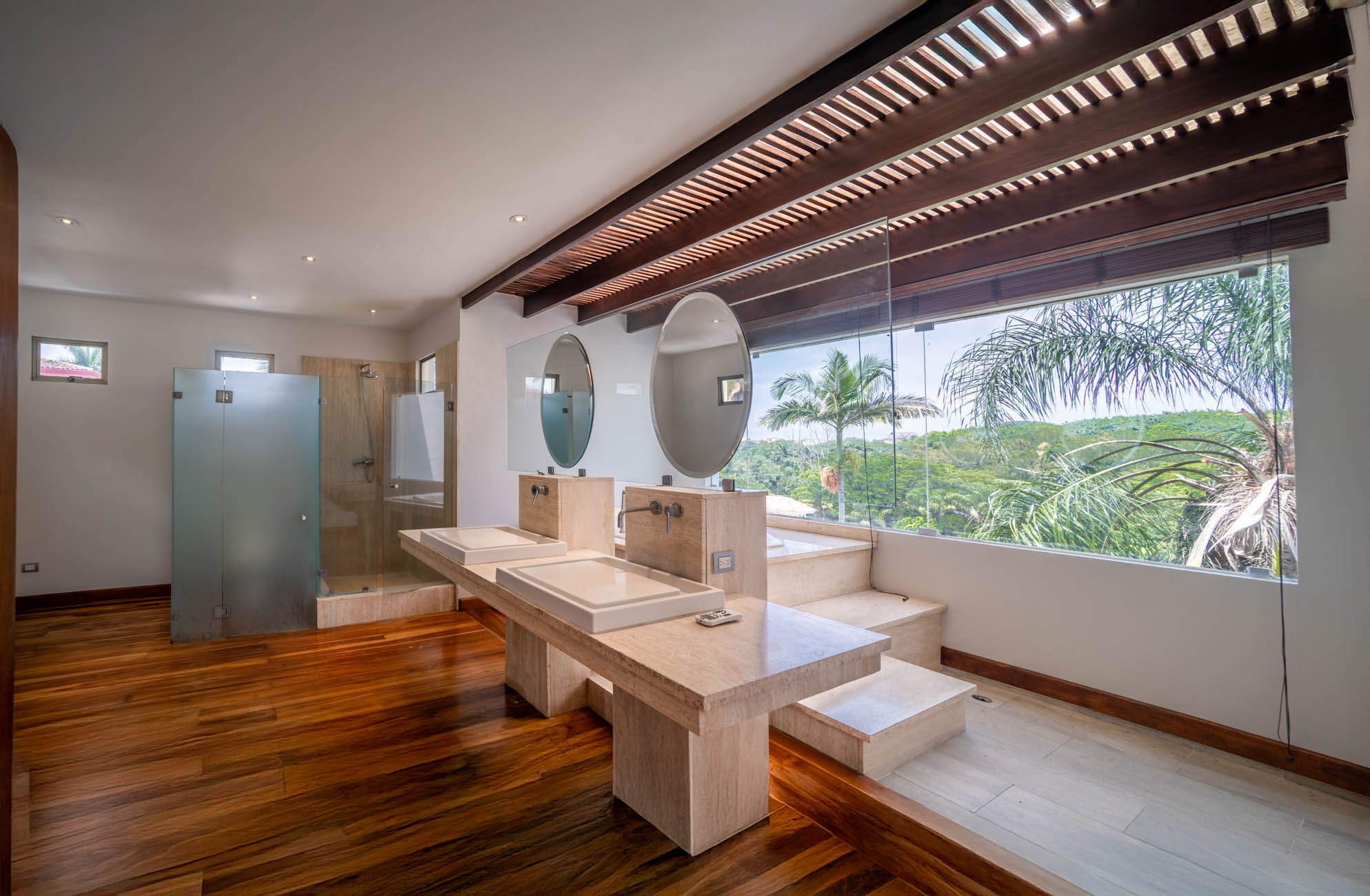 1 hab principal con baño privado, ducha doble lavatorio, jacuzzi y terraza grande con vista.